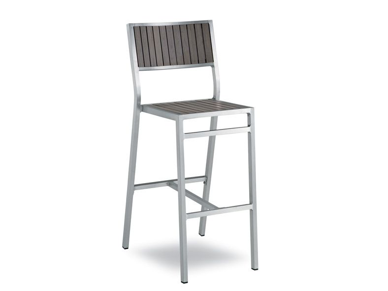 Odolná zahradní barová židle Bavaria Big bez opěrek na ruce je ideální volbou jako terasová židle pro bary a rychlá občerstvení. Rám židle je z broušeného hliníku, který dodává židli saténový vzhled. Sedací i žádová část jsou z polywoodu - inovativní plastový materiál, který na první pohled vypadá jako dřevo. Oproti dřevu má mnoho výhod, je téměř bezúdržbový, jednoduše se čistí a má dlouhou životnost. Tento typ židle je ideální pro gastro zařízení. Židle je dostupná ve 2 barevných variantách: Bavaria Big Grey a Bavaria Big Teak Look. Obě varianty vidíte na fotografiích v galerii.