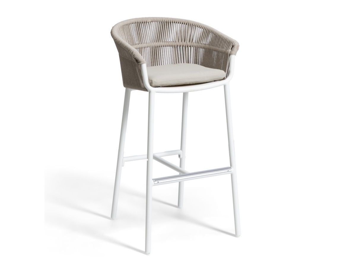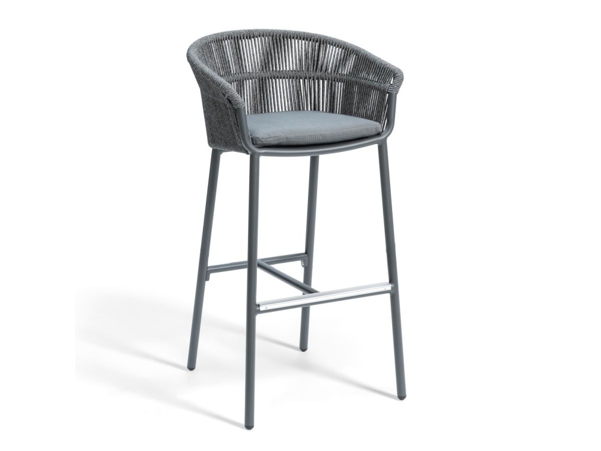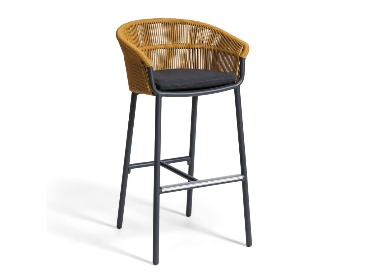 Vzdušná a elegantní barová židle Lake Bar je typickým představitelem moderního designu zahradního nábytku. Barová židle Lake Bar má hliníkovou konstrukci, opěradlo je ručně ovinuté syntetickým lanem a dodává židli moderní vzhled. Díky kvalitnímu podsedáku z PVC látky, který je vyplněný rychloschnoucí pěnou Quick Dry Foam a použitým materiálům barová židle Lake Bar splňuje všechny předpoklady k tomu, aby mohla být venku během celého roku. Tento typ barové židle je ideální volbou pro terasy restaurací, kaváren nebo barů. Židle je dostupná ve třech barevných variantách: antracit, bianco/beige a též v nádherné kombinaci antracit/senape, které můžete vidět v galerii. Židle je dostupná i v klasickém provedení jako jídelní židle. Ve stejném provedení máme i sedací soupravu Lake, kterou najdete v sekci sedací soupravy.