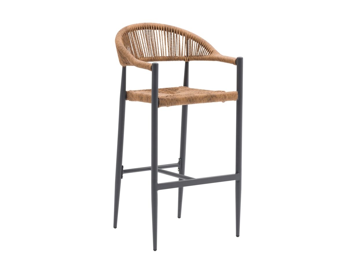 Barová stolička Panama predstavuje dokonalú rovnováhu medzi hrejivým naturálnym dizajnom a modernou priemyselnou estetikou. Jej štíhla hliníková konštrukcia v antracitovom vyhotovení v kombinácii s výpletom v tabakovej farbe vytvára vizuálne pôsobivý kontrast, ktorý okamžite dodá charakter každému vysokému sedeniu. Je navrhnutá s dôrazom na ľahkosť a stabilitu, vďaka čomu je ideálnou voľbou nielen pre súkromné terasy, ale aj pre náročné prostredia v gastronómii a hotelierstve.