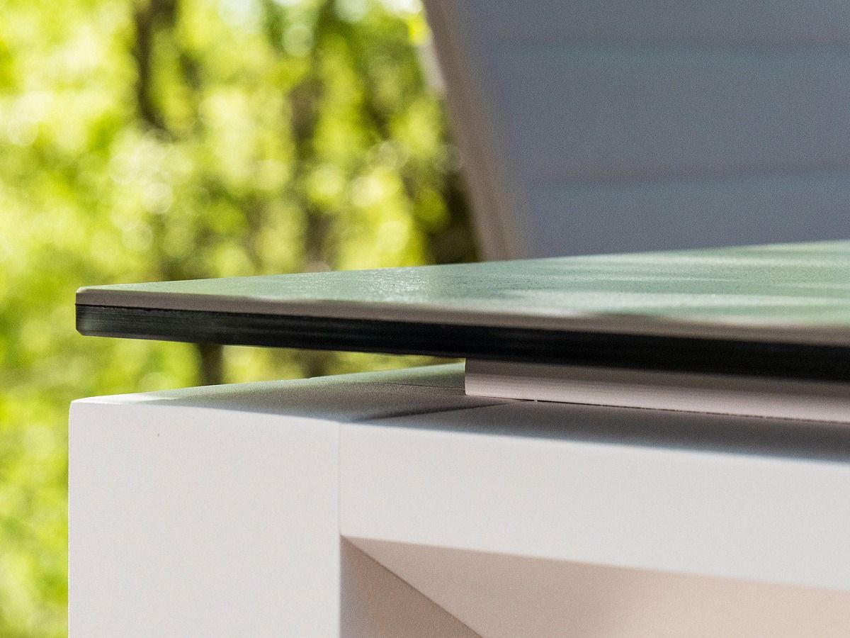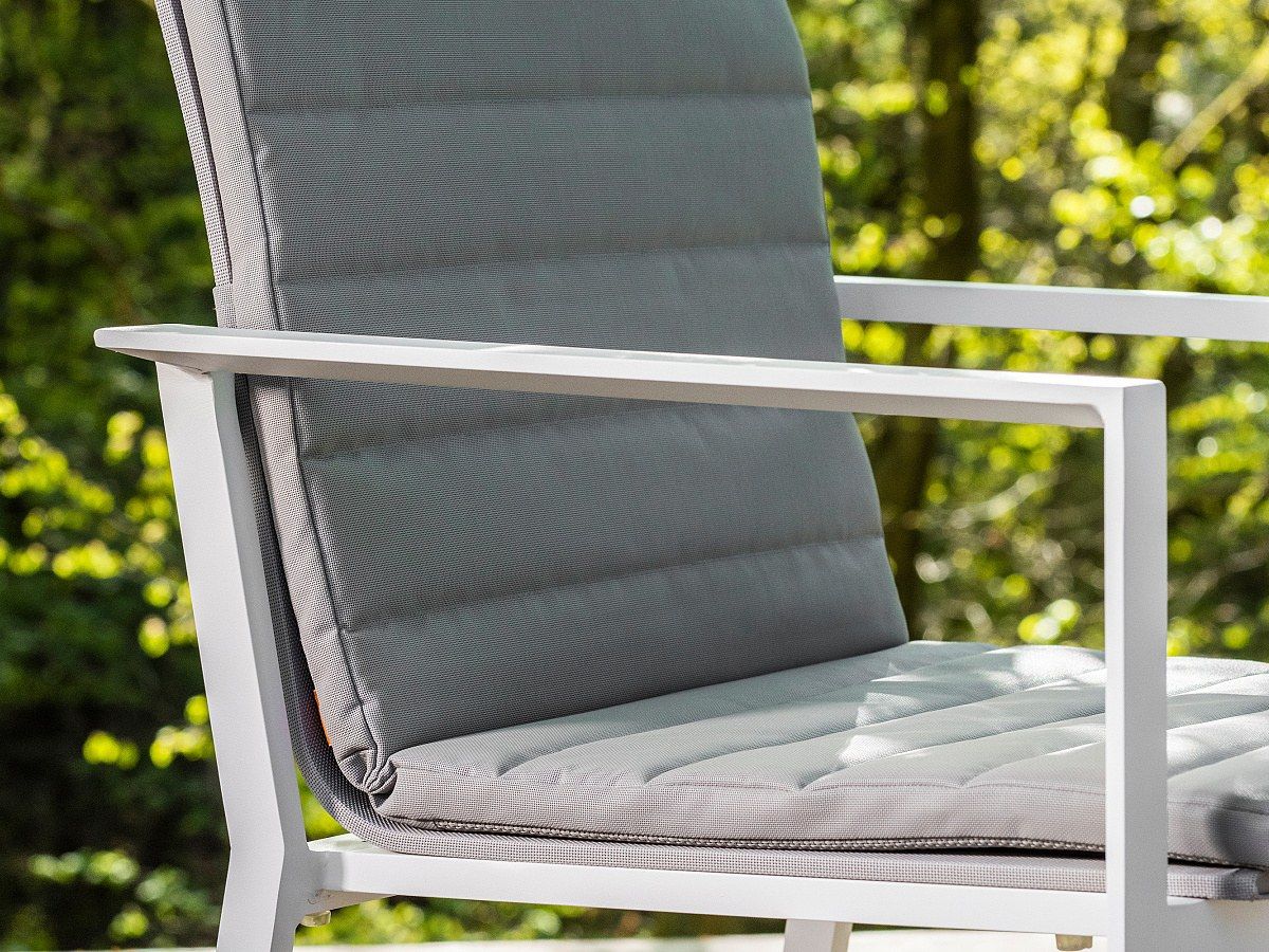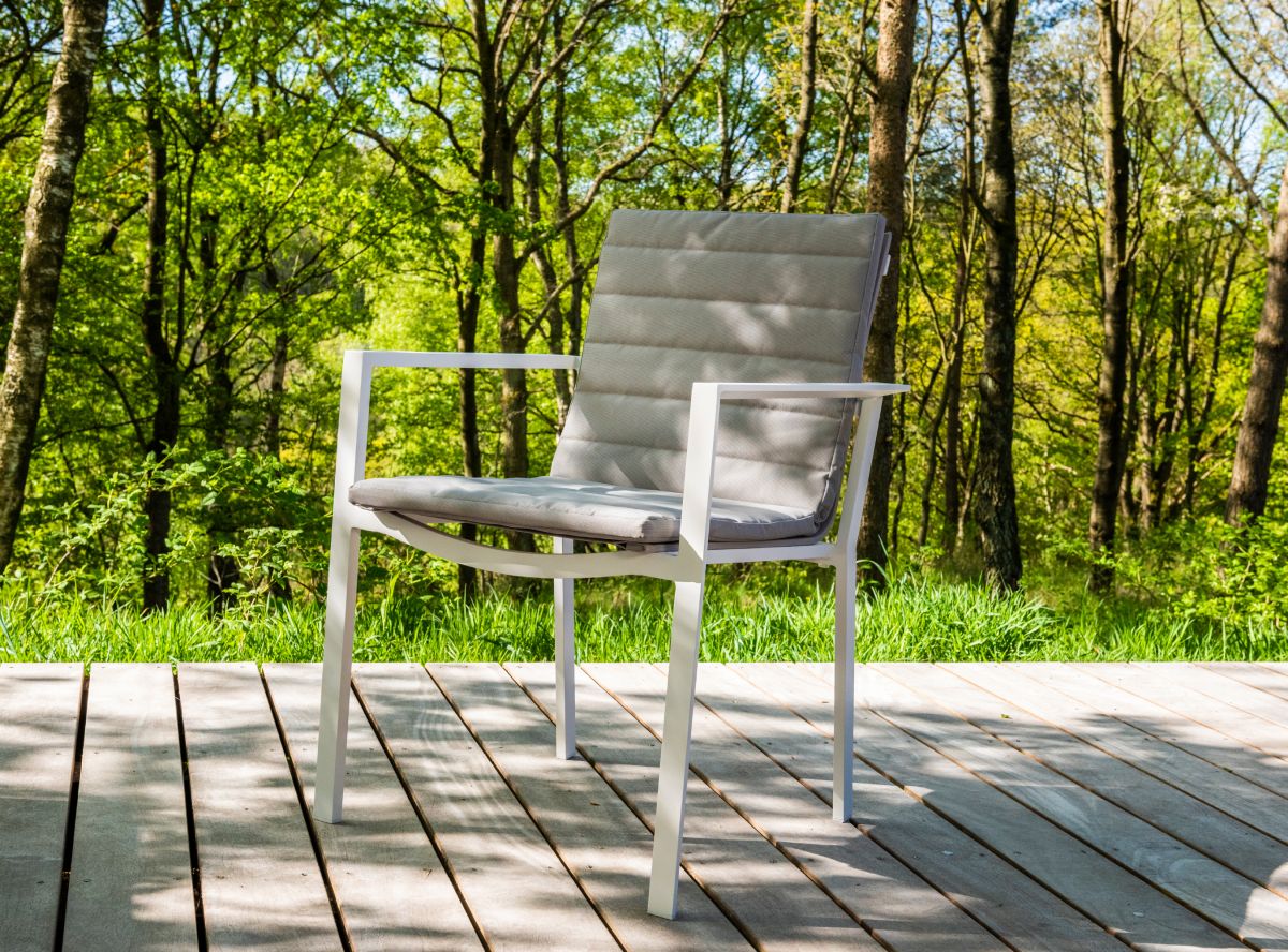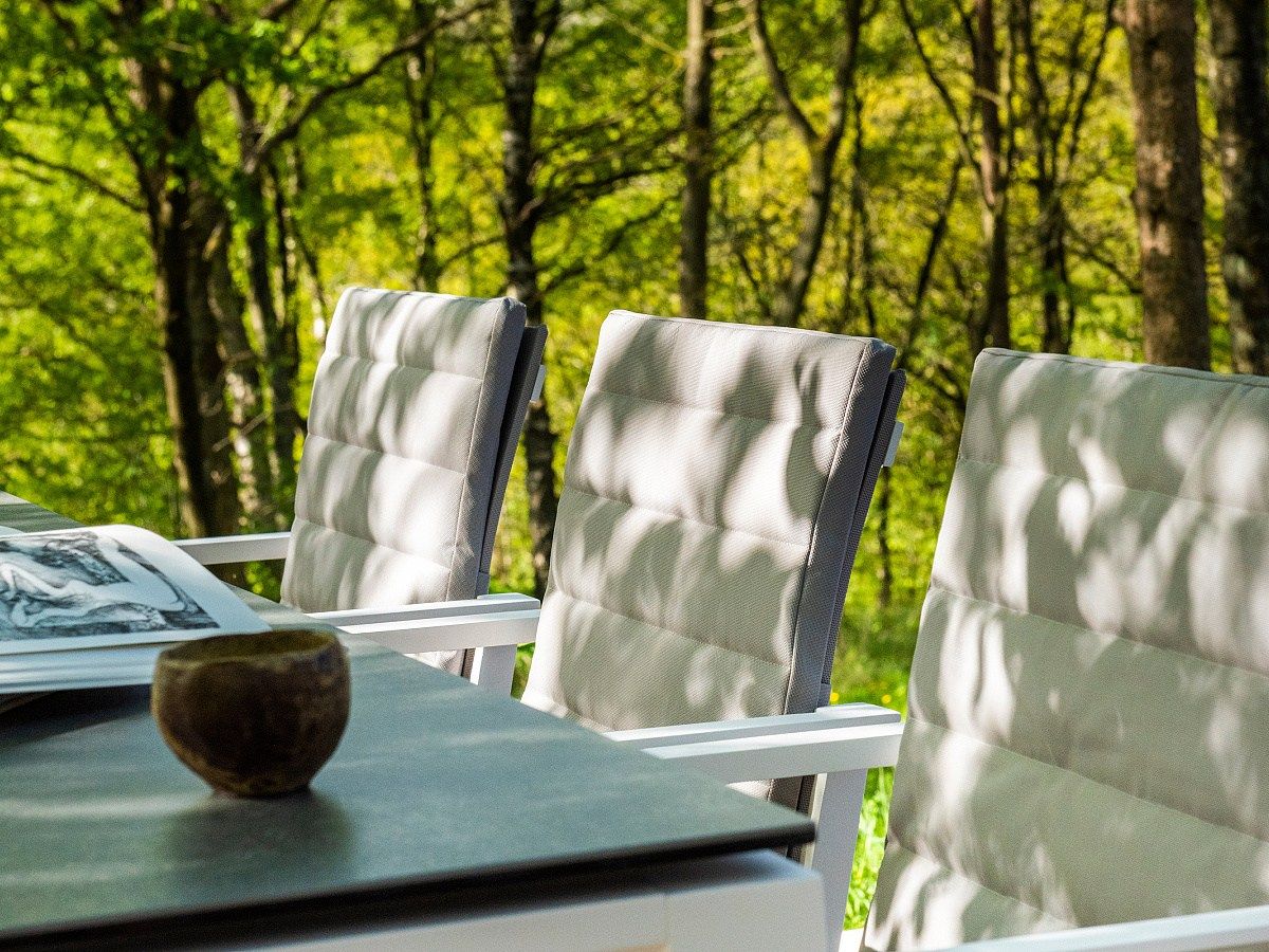 Krásný a praktický typ zahradní stolové sestavy, který Vás upoutá na první pohled. Stůl Concept Ceramic má hliníkový rám a stolová deska je z Ceramic Concrete look (keramická stolová deska), takže ja bezúdržbový. Židle má hliníkovou konstrukci a je potažená rychleschnoucím textilenem. Pro větší pohodlí je židle doplněna o elegantní podsedák, který je po celé sedací a opěrkové části. Je dostupný ve třech barevných variantách. Podsedák je z outdoorovej látky ALL WEATHER nebo SOLTEX. Tyto materiály splňují všechna kritéria k tomu, aby židle s podsedáky mohly být venku celoročně.