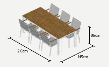 stůl: 210 x 90 x 75 cm