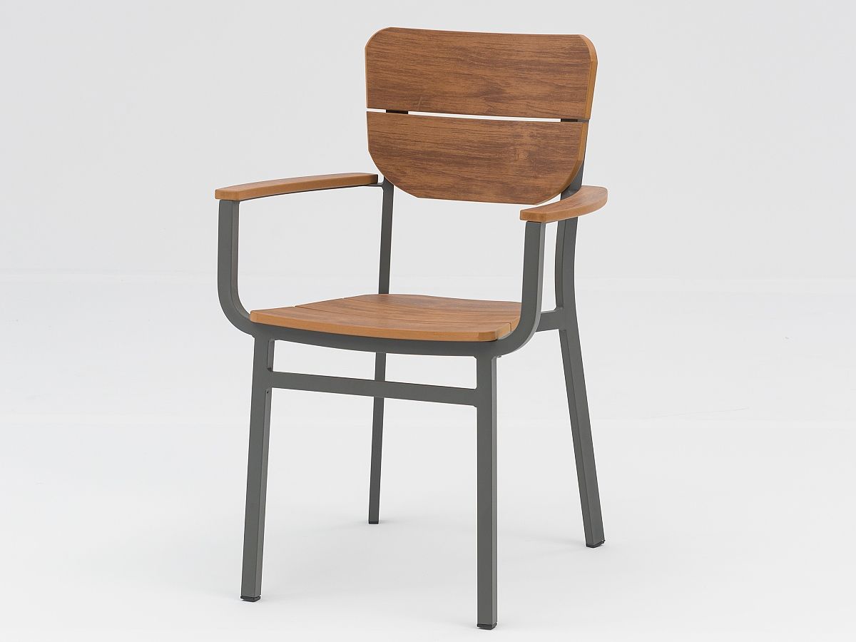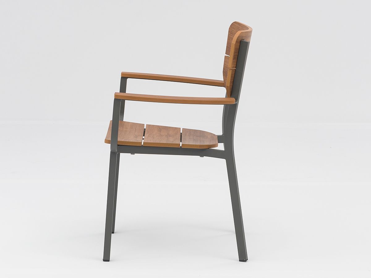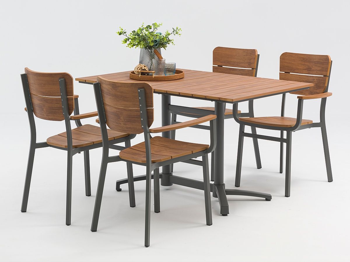 Praktická zahradní stolová sestava Focus je ideální volbou pro hotely a restaurace. Díky použitým materiálům je téměř bezúdržbová. Rám židle je z hliníku a je stříkaný práškovou antarcitovou barvou. Stolová deska stejně jako sedací část, zádová část a opěrky židle jsou z polywoodu - inovativní plastový materiál, který se lehce čistí a má dlouhou životnost. Stůl Focus je dostupný i v menším provedení s rozměry 80 x 80 cm. Židle je stohovatelná.