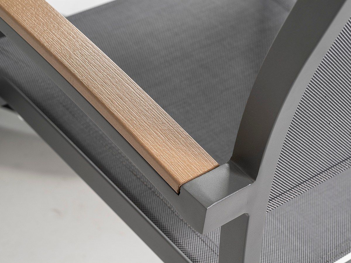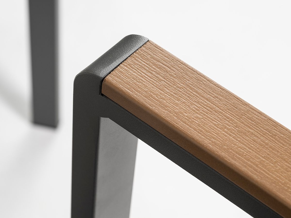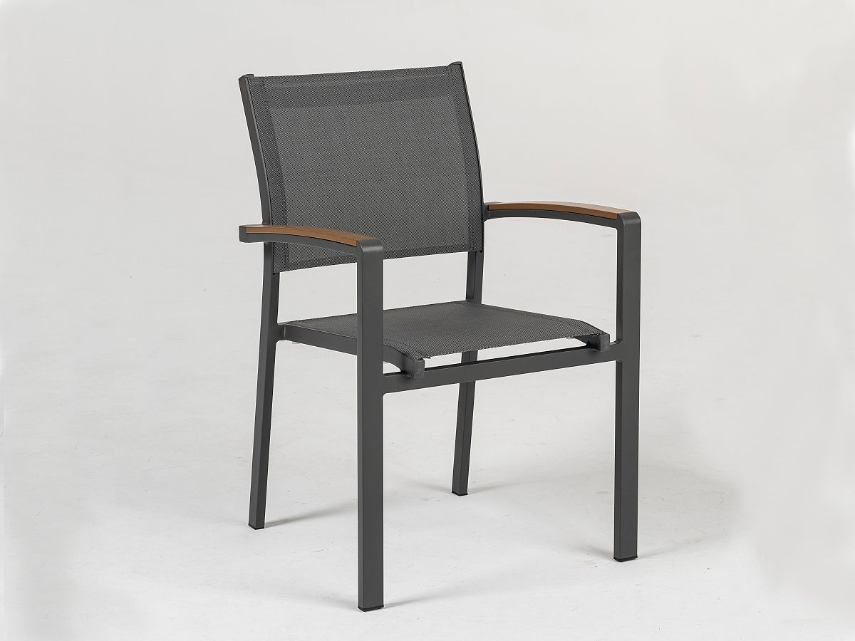 Elegantní a praktický typ zahradní stolové sestavy, která Vám vydrží roky. Stůl Lilly má hliníkový rám v antracitové barvě a stolová deska je z materiálu HPL s šířkou 12mm v šedé kamenné barvě. Židle má hliníkovou konstrukci a je potažená rychloschnoucím textilenem. Opěrky židle jsou z polywoodu v imitaci dřeva. Tento typ stolové sestavy můžete mít venku celoročně bez nutnosti jejího uklízení či přikrývání ochrannou plachtou.
