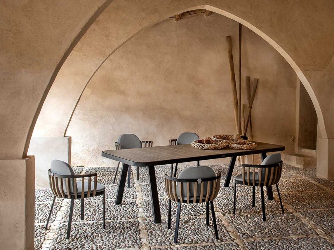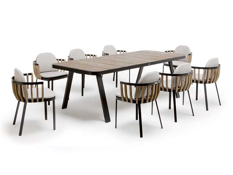 Překrásná exkluzivní zahradní jídelní sestava Swing Dinning bude hlavní hvězdou každé terasy. Krásné křivky, použitý materiál a celková elegance zpracování Vás ohromí na první pohled. Stůl má hliníkovou konstrukci, která je dostupná v černé nebo bílé barvě. Stolová deska je z prémiového teakového dřeva z certifikovaných plantáží a je dostupná ve dvou variantách teaku - v klasickém přírodním hnědém nebo šedém provedení. Židle je dostupná ve stejných barvách hliníkové konstrukce jako stůl a teakové laťky na opěrkové části židle si také zvolíte dle přání. Opět můžete vybírat ze 2 barev teaku. Kolekce Swing obsahuje i sedací soupravy, lounge křesla i barové židle. Můžete mít jídelní a lounge část terasy ve stejném stylu.