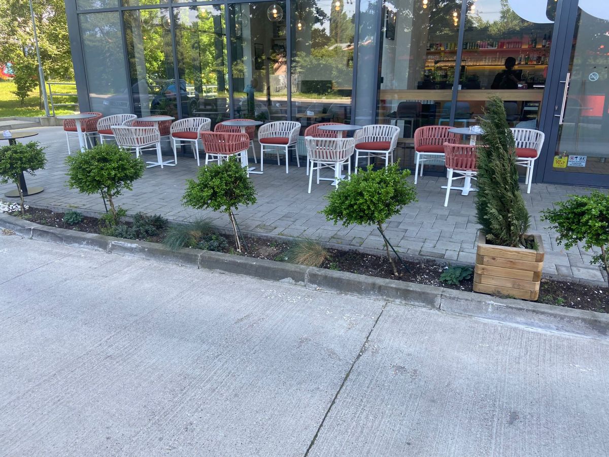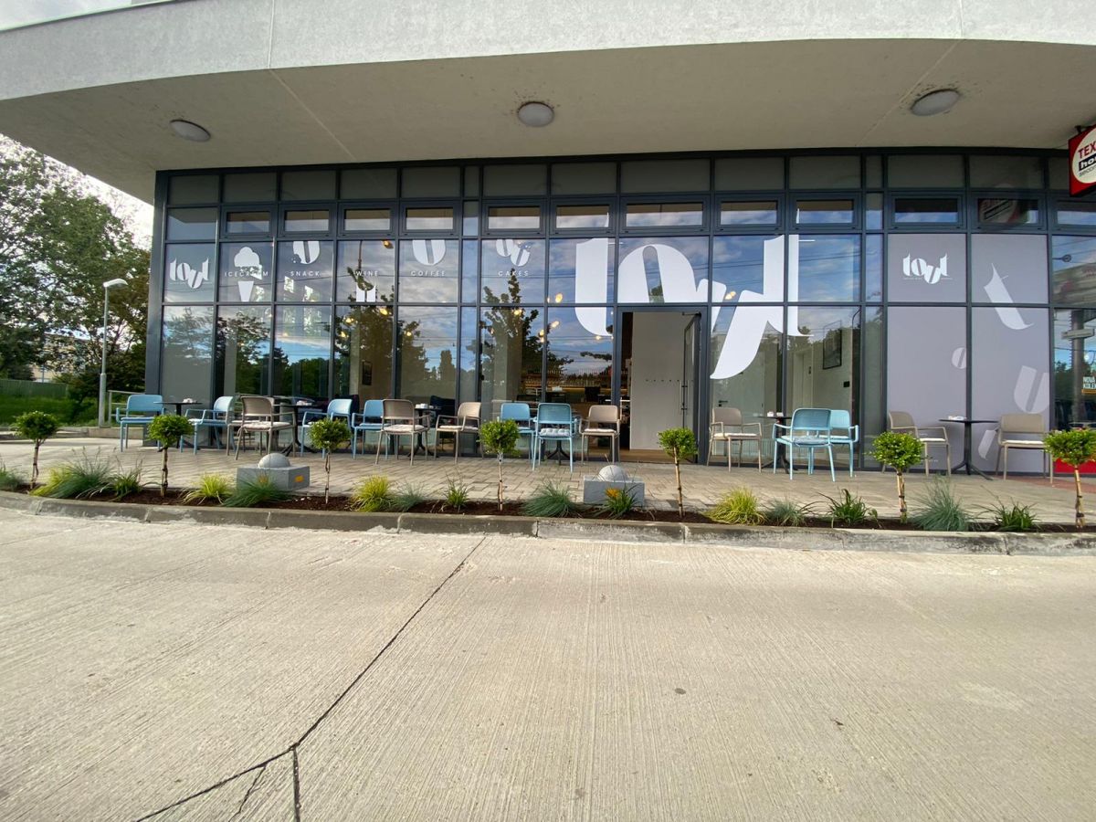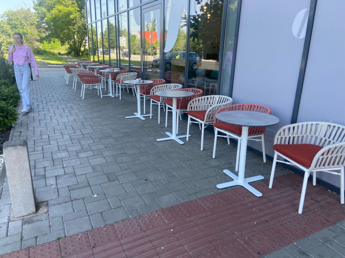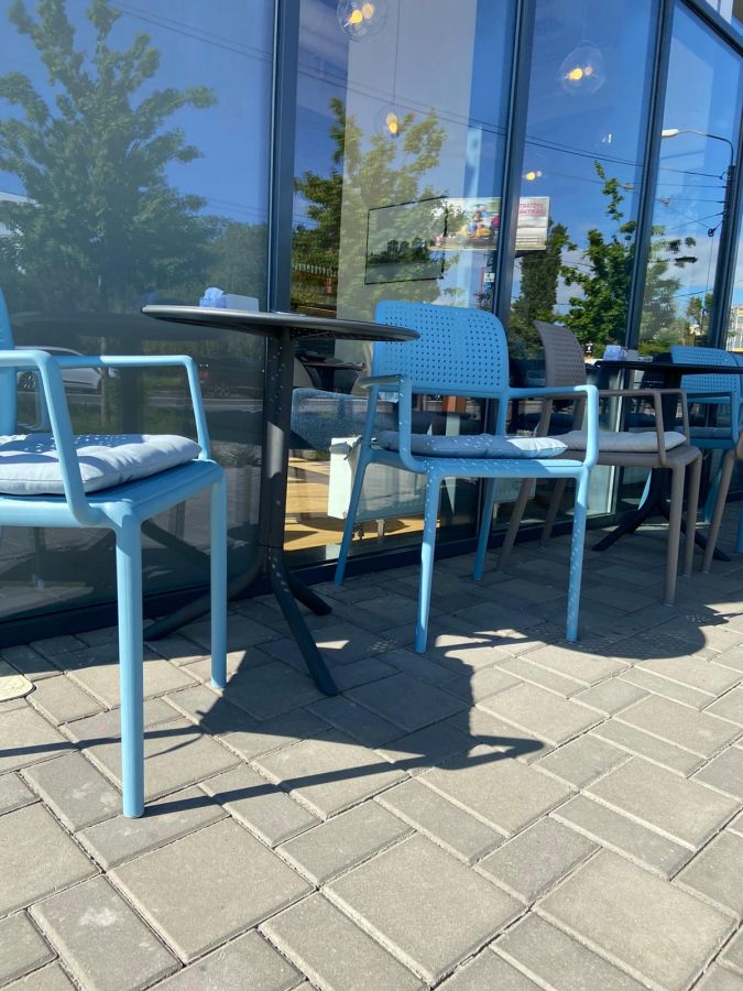 Zařízení nové moderní kavárny Tout Coffee v Bratislavě krásnými židlemi Berry. Barevné provedení na přání klienta.