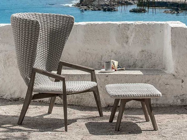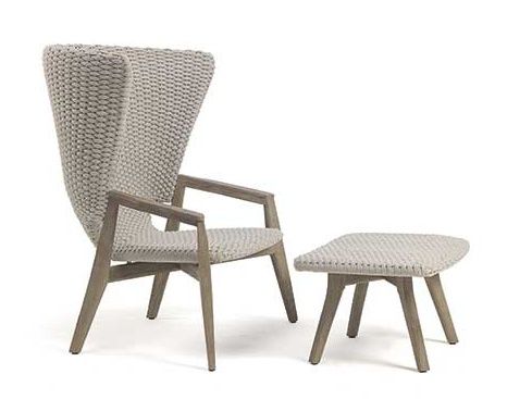 Exkluzivní zahradní křeslo Knit High Back představuje dokonalou syntézu estetiky a funkčnosti. Krásné křivky, dokonalé proplétání syntetického lana a teplo kvalitního teakového dřeva, z kterého je konstrukce tohoto křesla vyrobená. K dispozici jsou dvě barevné možnosti: černé propletení s hnědým teakovým dřevem nebo šedé propletení s mořeným šedým teakem. Barevná provedení můžete vidět na přiloženém obrázku. Ke křeslu je možné dokoupit podnožku i podsedák.