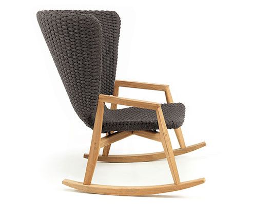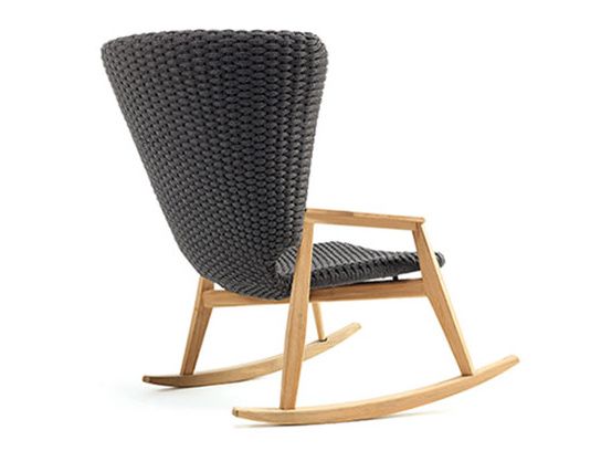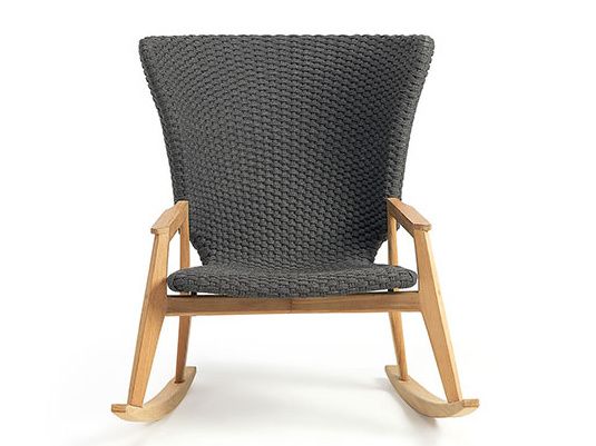 Exkluzivní zahradní křeslo Knit Rocking představuje dokonalou syntézu estetiky a funkčnosti. Krásné křivky, dokonalé proplétání syntetického lana a teplo kvalitního teakového dřeva, z kterého je konstrukce tohoto křesla vyrobená. K dispozici jsou dvě barevné možnosti: černé propletení s hnědým teakovým dřevem nebo šedé propletení s mořeným šedým teakem. Barevná provedení můžete vidět na přiloženém obrázku. Ke křeslu je možné dokoupit podnožku i podsedák.
