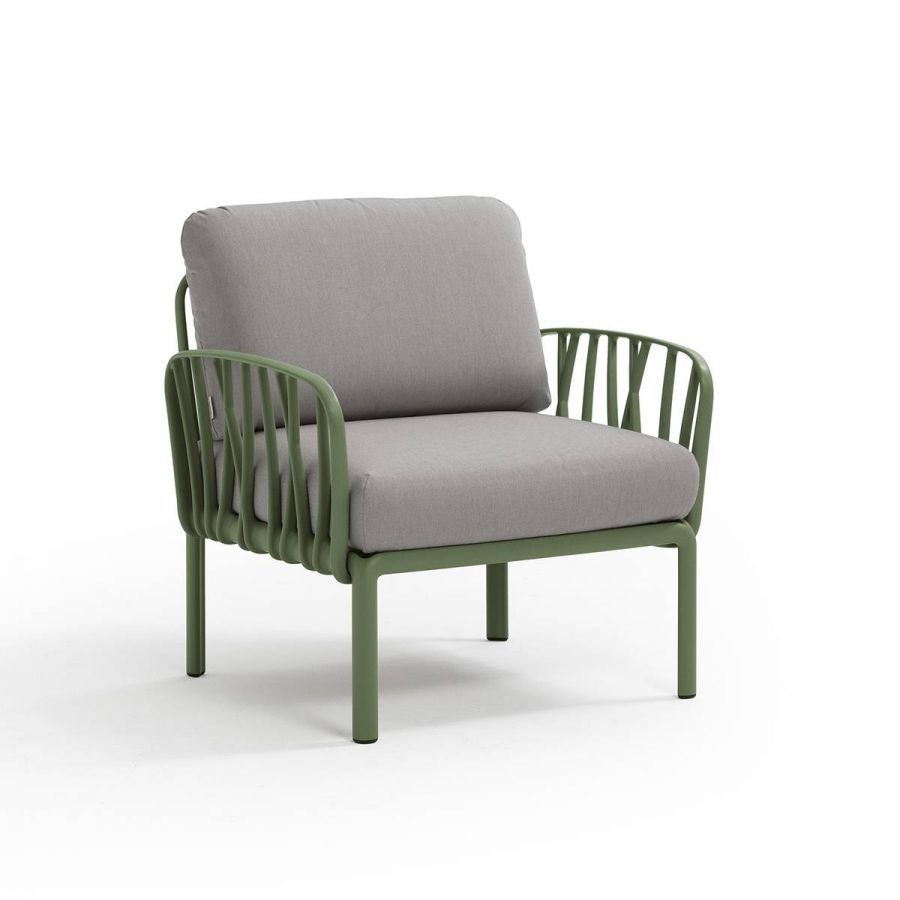 Krásné zahradní křeslo Komodo Classic je díky svým barevným kombinacím a precizním liniím vrcholem italského designu. Můžete si libovolně kombinovat barvu konstrukce s barvami podsedáku. Konstrukce křesla je z tvrzeného plastu zpevněného skelným vláknem. Zádový polštář i podesedák jsou kompletne snímatelné, dají se prát na 30 °C. Podsedák má navíc speciální úchytky, díky kterým jej zespodu jednoduše připevníte ke konstrukci, takže Vám neuletí ani ve větším větru.