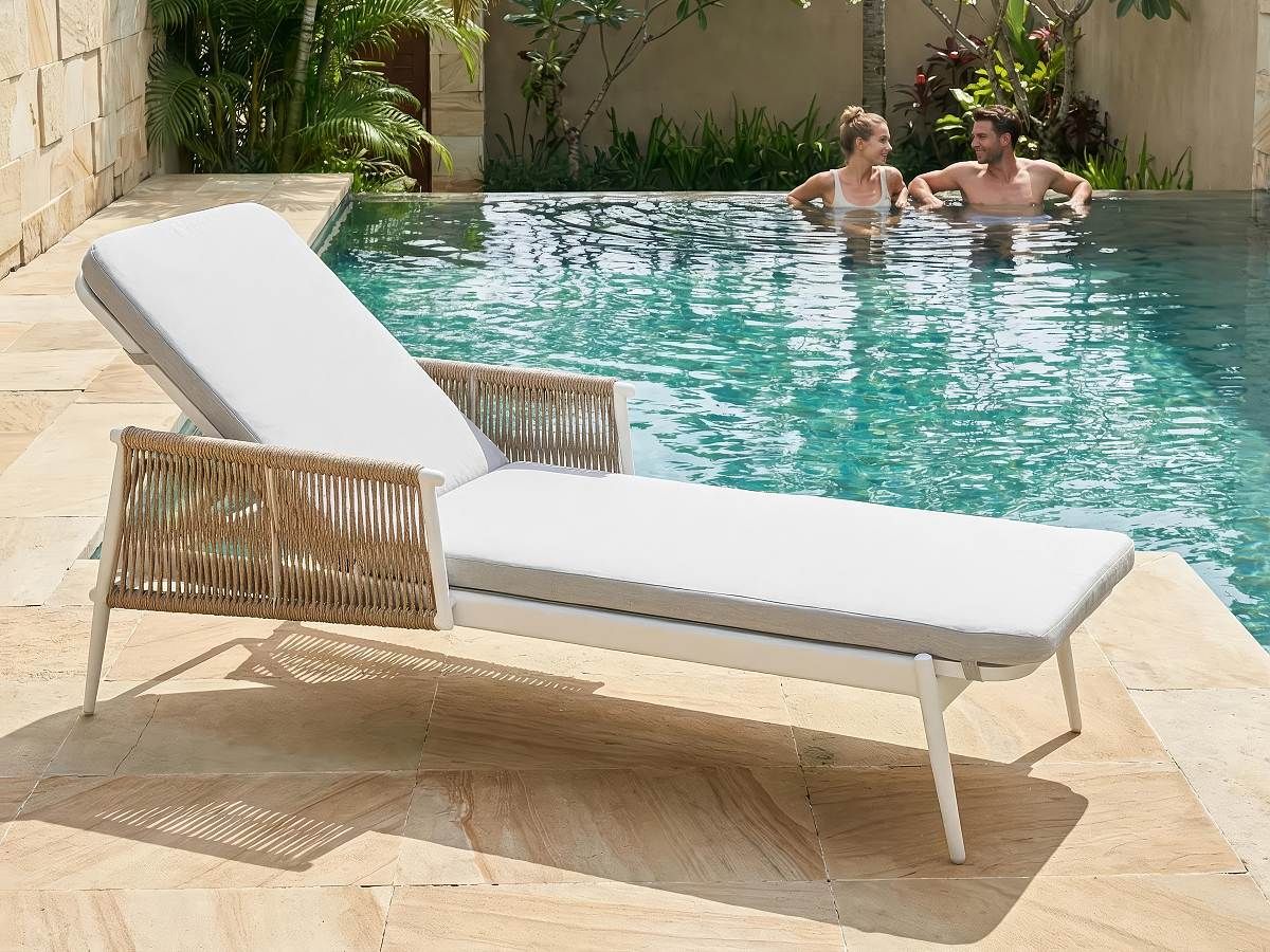 Lehátko Coconut vnáša do priestoru ľahkosť a prírodný štýl. Vďaka harmonickej kombinácii hliníkového rámu vo farbe slonovinovej kosti (ivory) a výpletu v naturálnom odtieni pôsobí mimoriadne luxusne a čisto. Ergonomický dizajn doplnený o mäkké, vodoodpudivé polstrovanie z neho robí perfektnú voľbu k bazénu, na terasu aj do moderných wellness priestorov.