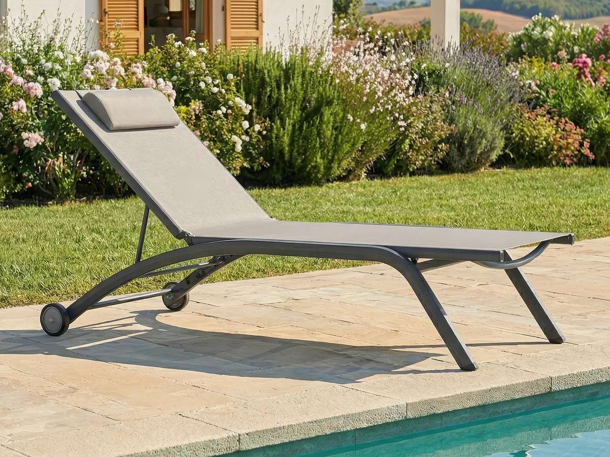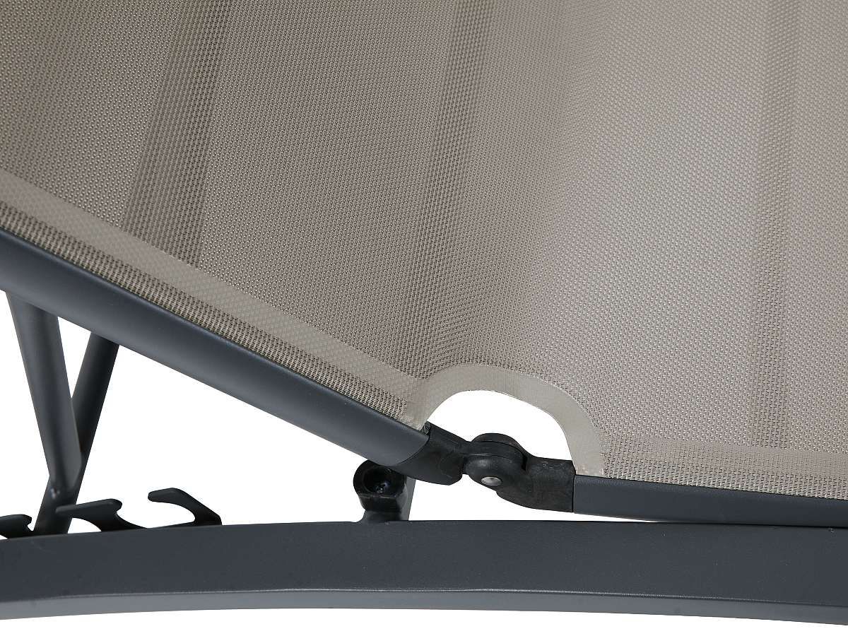 Lehátko Peking je synonymom pre veľkorysý relax. Svojimi nadštandardnými rozmermi ponúka kráľovský priestor pre odpočinok pri bazéne alebo na strešnej terase. Čisté línie antracitového hliníka v kombinácii s výpletom v odtieni taupe vytvárajú nadčasový vzhľad. Pre váš maximálny komfort je ležadlo vybavené nastaviteľnou chrbtovou opierkou, integrovanými kolieskami a prídavným podhlavníkom.