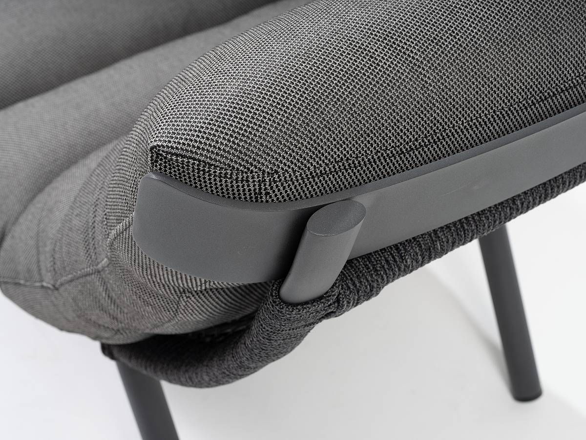 Set Barbados Antracit je navrhnutý pre tých, ktorí hľadajú maximálny komfort kresla spojený s možnosťou úplného natiahnutia nôh. Set Barbados má elegantný výplet v tmavosivej farbe a na konštrukcii v odtieni antracit pôsobí jemne a sofistikovane. Vďaka použitiu špičkovej látky Axroma na vankúšoch získavate set, ktorý je nielen štýlový, ale aj mimoriadne odolný voči vonkajším vplyvom.