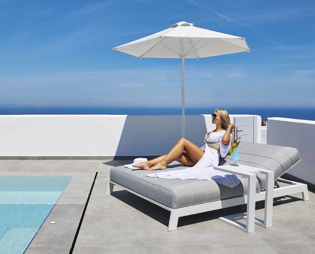 Designové ležadlo Bite Double má hliníkovou konstrukci a je doplněné mohutnou matrací z materiálu quick dry foam s potahovou látkou Sunbrella (vhodná do všech typů počasí). Toto ležadlo dodá punc luxusu každé moderní zahradě s bazénem. Je dostupné i ve verzi klasického lehátka pre jednu osobu. Najdete ho v sekci Lehátka.