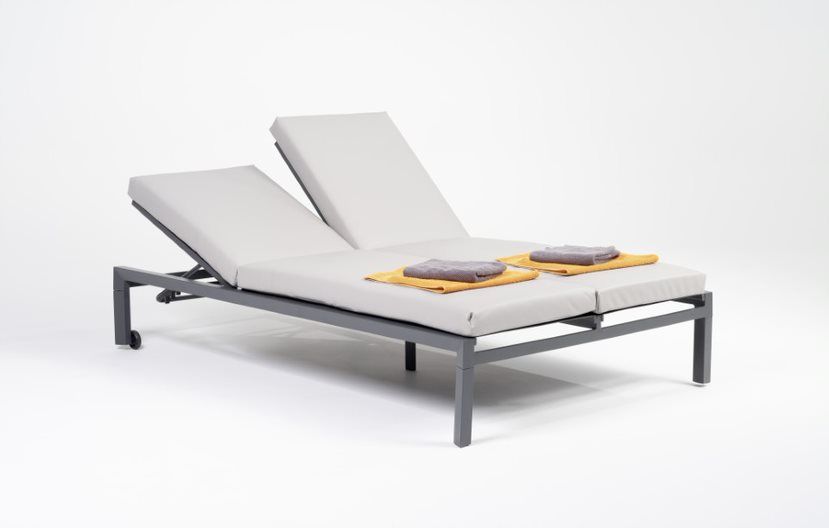 Krásné a pohodlné zahradní ležadlo pro dvě osoby Carry-Two je ideálním exteriérovým nábytkem pro aquaparky, bazénové světy nebo moderní koupaliště. Díky voděodolné matraci nemusíte ležadlo schovávat ani během nepříznivého počasí. Obě opěradla jsou individuálně nastavitelná, takže pokud chce jedna osoba ležat na břichu a mít ležadlo v rovině, druhá osoba může mít opěradlo nastavené do seu a číst si knihu. Manipulaci s ležadlem ulehčují zabudovaná kolečka.