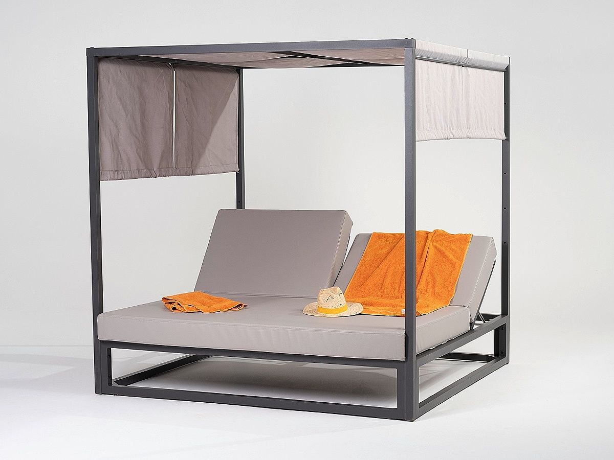 Krásne a pohodlné záhradné ležadlo pre dve osoby Ivy je ideálnym exteriérovým nábytkom pre aquaparky, bazénové svety či modernejšie kúpaliská. Vďaka vodeodolnému matracu nemusíte ležadlo schovávať ani počas nepriaznivého počasia. Obidve operadlá sú individuálne nastaviteľné, takže ak jedna osoba chce ležať na bruchu a mať ležadlo v rovine, druhá osoba môže mať operadlo nastavené tak, že može sedieť a čítať pri tom knihu. Vďaka nastavitelným závesom, ktoré môžete posúvať z prava do ľava bude Váš relax donalý a nebudú ho rušiť ani prenikajúce slnečné lúče.