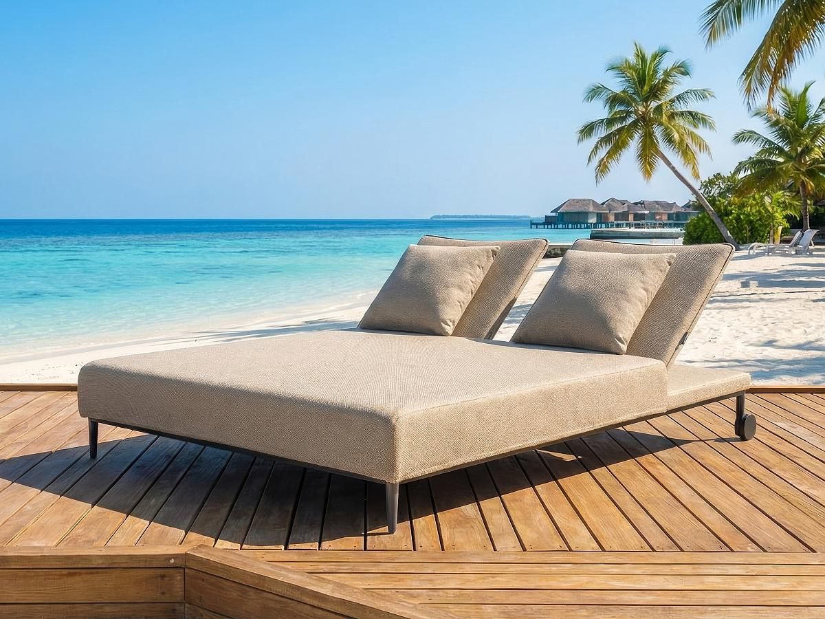 Ležadlo Saint Tropez Duo Creme prináša do vášho exteriéru čistú eleganciu a maximálnu praktickosť. Toto moderné „double-chaiselounge“ spája veľkorysý priestor s minimalistickým dizajnom. Vďaka integrovanej technológii koliesok je aj napriek svojim rozmerom prekvapivo mobilné. Je to ideálny kúsok pre luxusné terasy, priestory pri bazéne alebo štýlové rooftop bary, kde sa vyžaduje maximálne pohodlie pre páry- Ležadlo Saint Tropez Duo Creme je očalúnené špičkovou látkou Axroma v jemnom krémovom odtieni. Vďaka integrovaným kolieskam ho bez námahy presuniete tam, kde práve svieti slnko. Čisté línie a minimalistický dizajn robia z tohto kúska dominantu každej luxusného bazéna či wellness zóny.