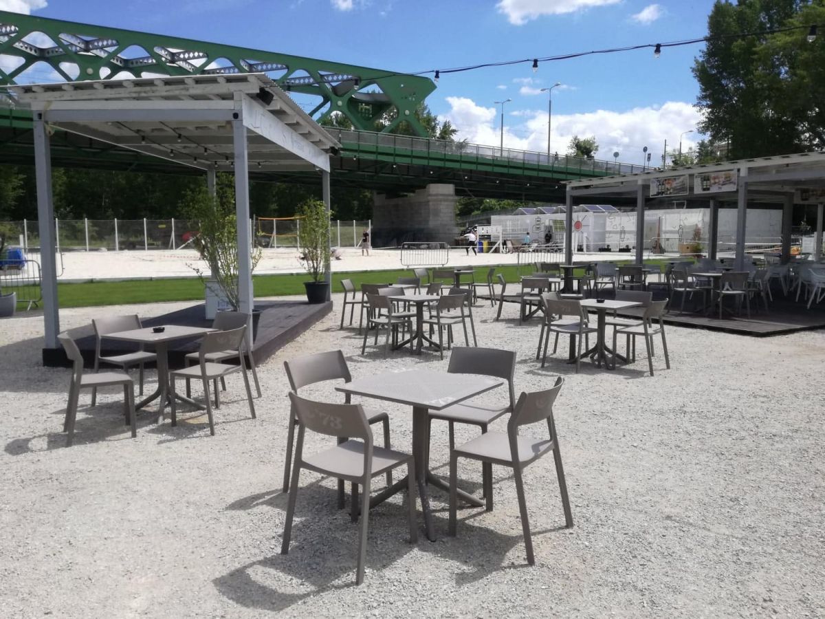 Zařízení bratislavské městské pláže Tyršák ve spolupráci se Zlatým Bažantem 73, kde jsme zákazníkovi na míru i brandovali židle a stoly logem.