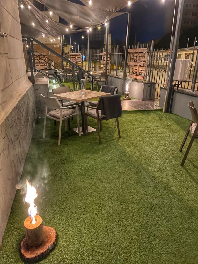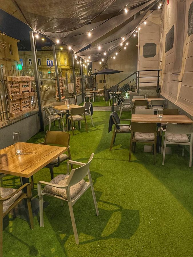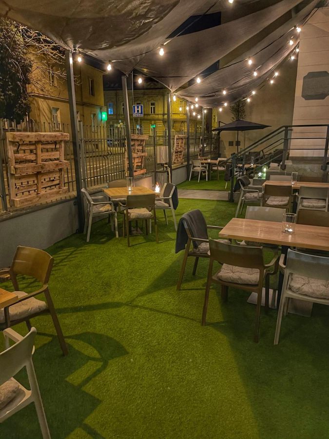 Zařízení letní terasy restaurace U Právnika krásnými židlemi Trill Armchair. Barevné provedení na přání klienta.