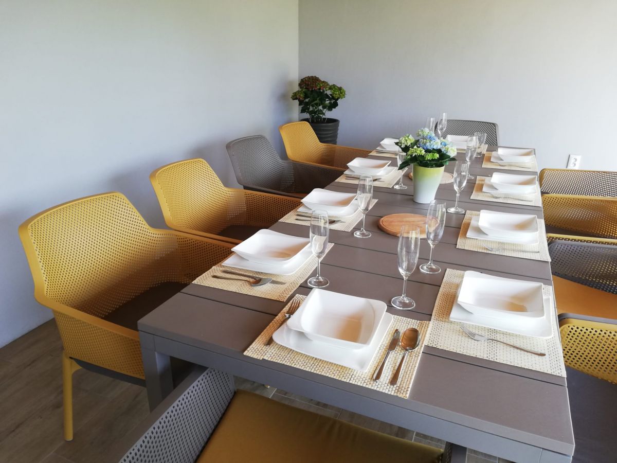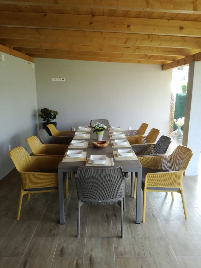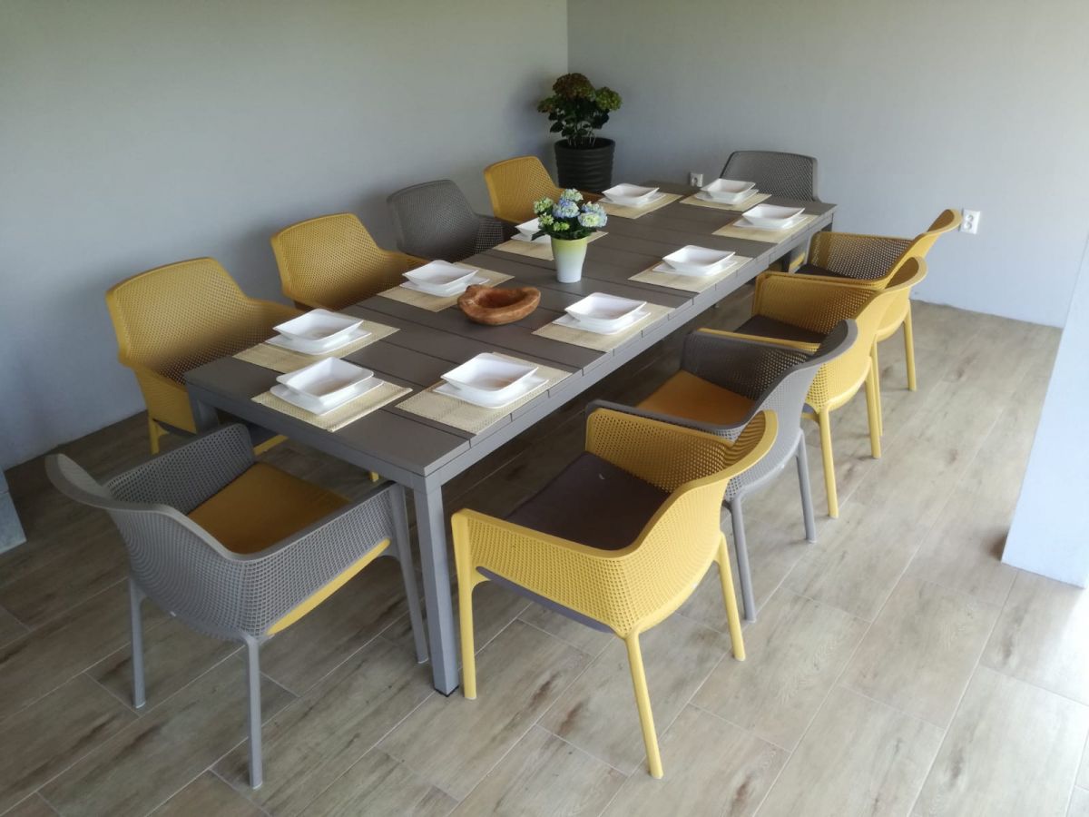 Moderní a robustní stolová souprava Rio Net Relax v barvách Tortora a Senape. Kombinace barev na přání klienta.