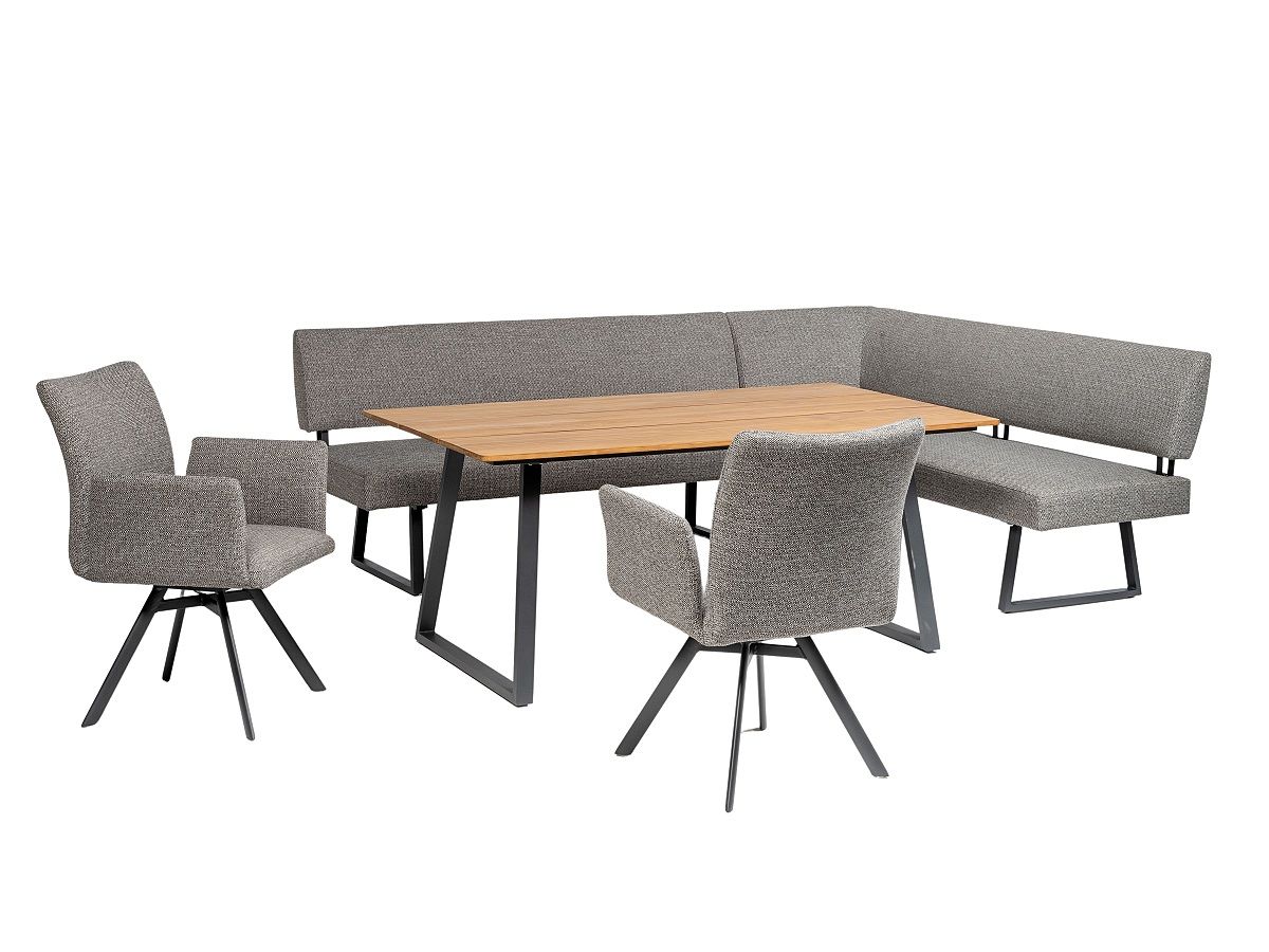 Stylová sestava Ibiza Corner je moderním provedením zahradního nábytku. Rohová stolová sestava Ibiza ve vás díky svému vzhledu evokuje interiérovou sedací soupravu, ale materiálově je vhodná k celoročnímu použití venku. Stůl má hliníkový rám antracitové barvy a stolová deska je z naolejovaného borovicového dřeva. Křesla i rohová lavice mají hliníkový rám antracitové barvy, jsou potažené speciální voděodolnou outdoorovou tkaninou šedé barvy. Křesla mají otočnou funkci. Rohová stolová sestava Ibiza Corner je dostupná v pravém i levém provedení.