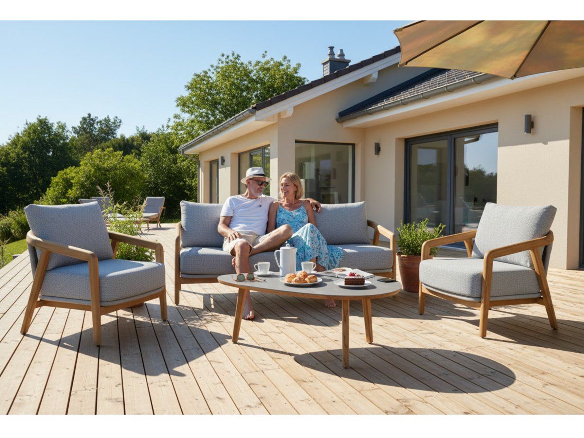 Sedacia súprava Brasilia Lounge predstavuje dokonalú symbiózu prírodnej krásy masívneho teakového dreva a modernej elegancie. Jej dizajn evokuje exotickú pohodu a súčasne spĺňa najprísnejšie nároky na kvalitu a trvácnosť v exteriéri. Vďaka použitiu ušľachtilých materiálov, ako je prírodný teak a odolný sinterstone, je táto súprava nielen vizuálnym skvostom, ale aj mimoriadne praktickým prvkom vašej terasy či záhrady.