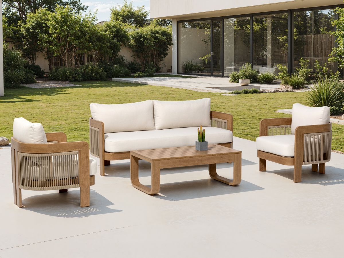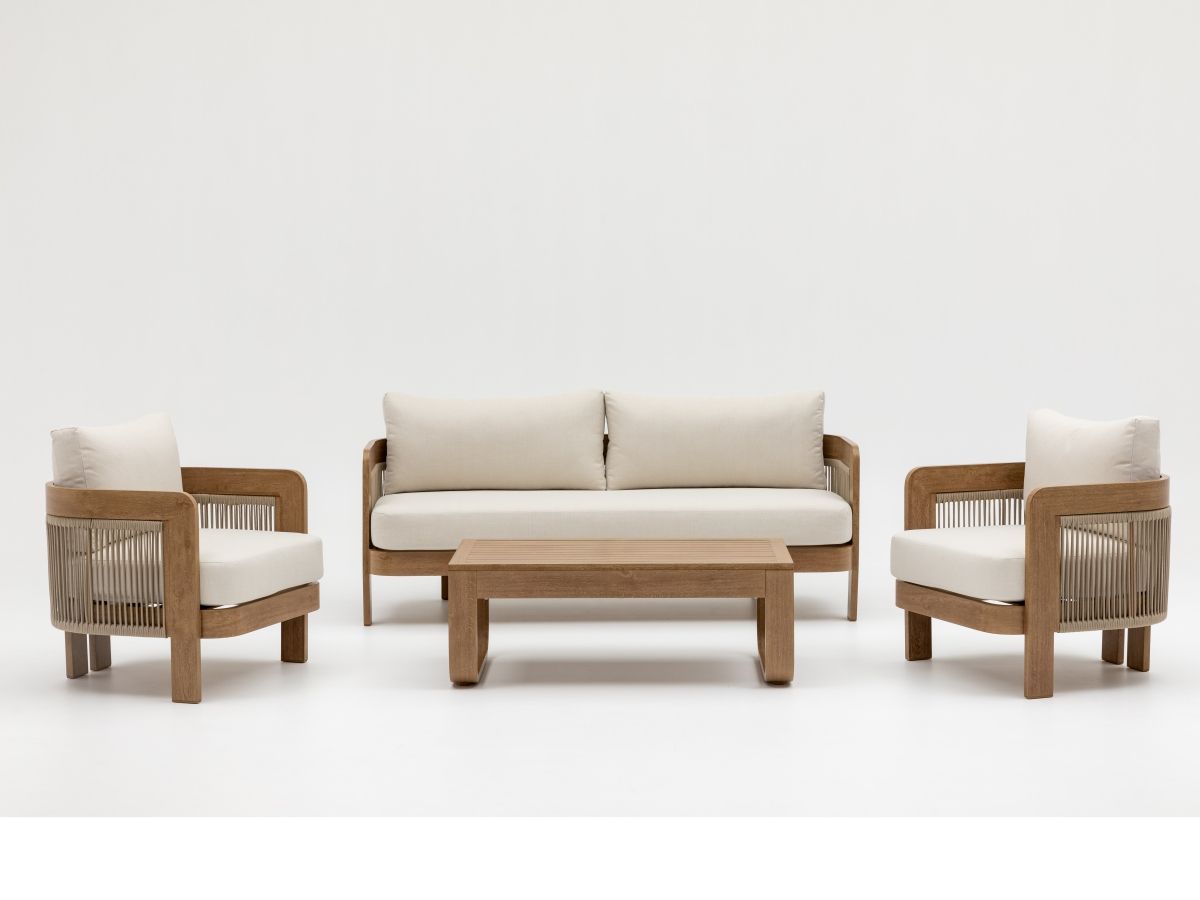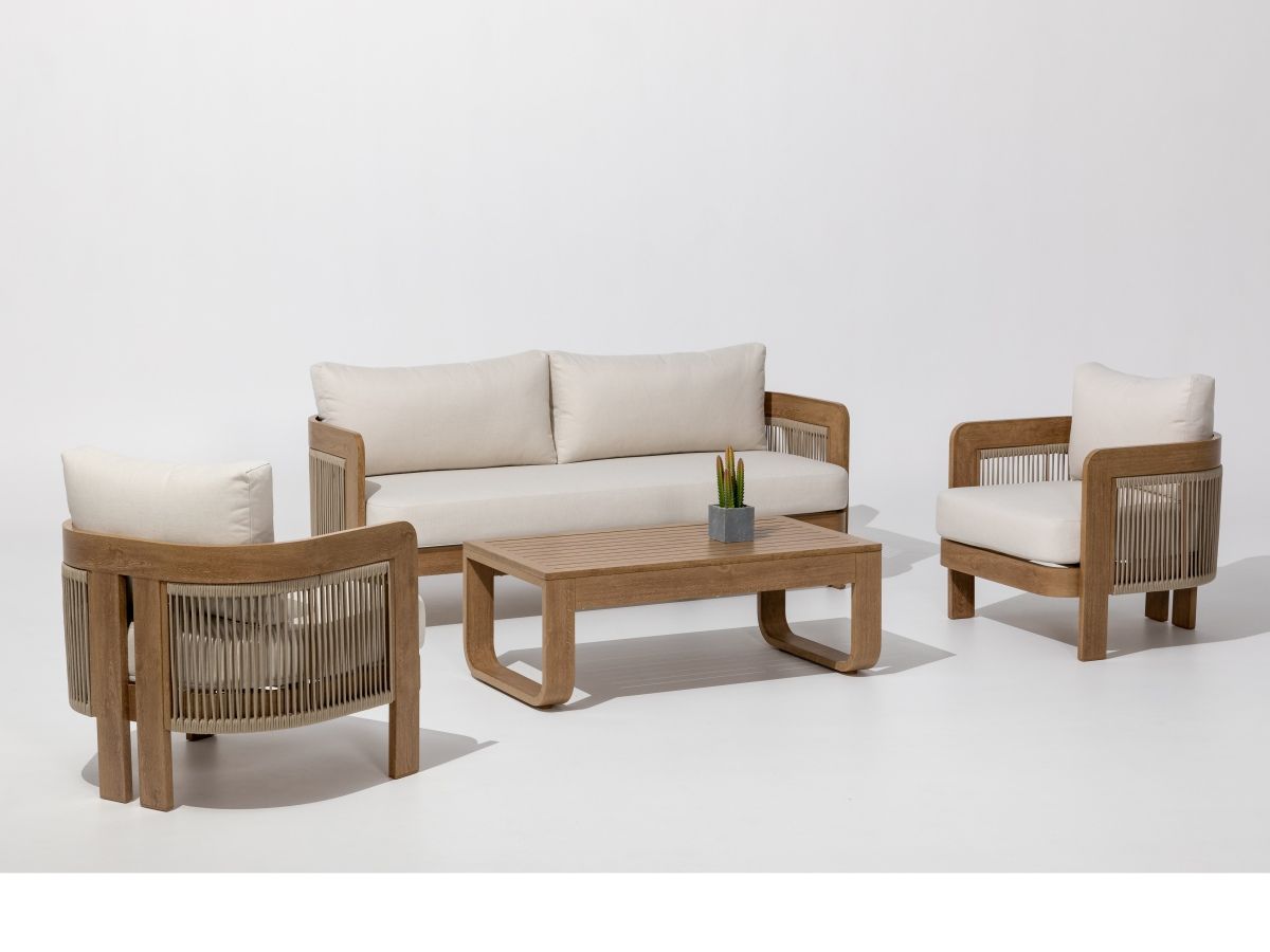 Sedacia súprava Dala je stelesnením príjemnej domácej pohody v modernom outdoorovom prevedení. Jej dizajn stavia na harmonickom prepojení teplých prírodných odtieňov a odolných materiálov, ktoré zabezpečujú dlhú životnosť bez nutnosti zložitej údržby. Vďaka svojmu elegantnému vzhľadu v štýle „wood finish“ sa súprava Dala stane prirodzeným a mimoriadne obľúbeným miestom na oddych na každej terase či balkóne.