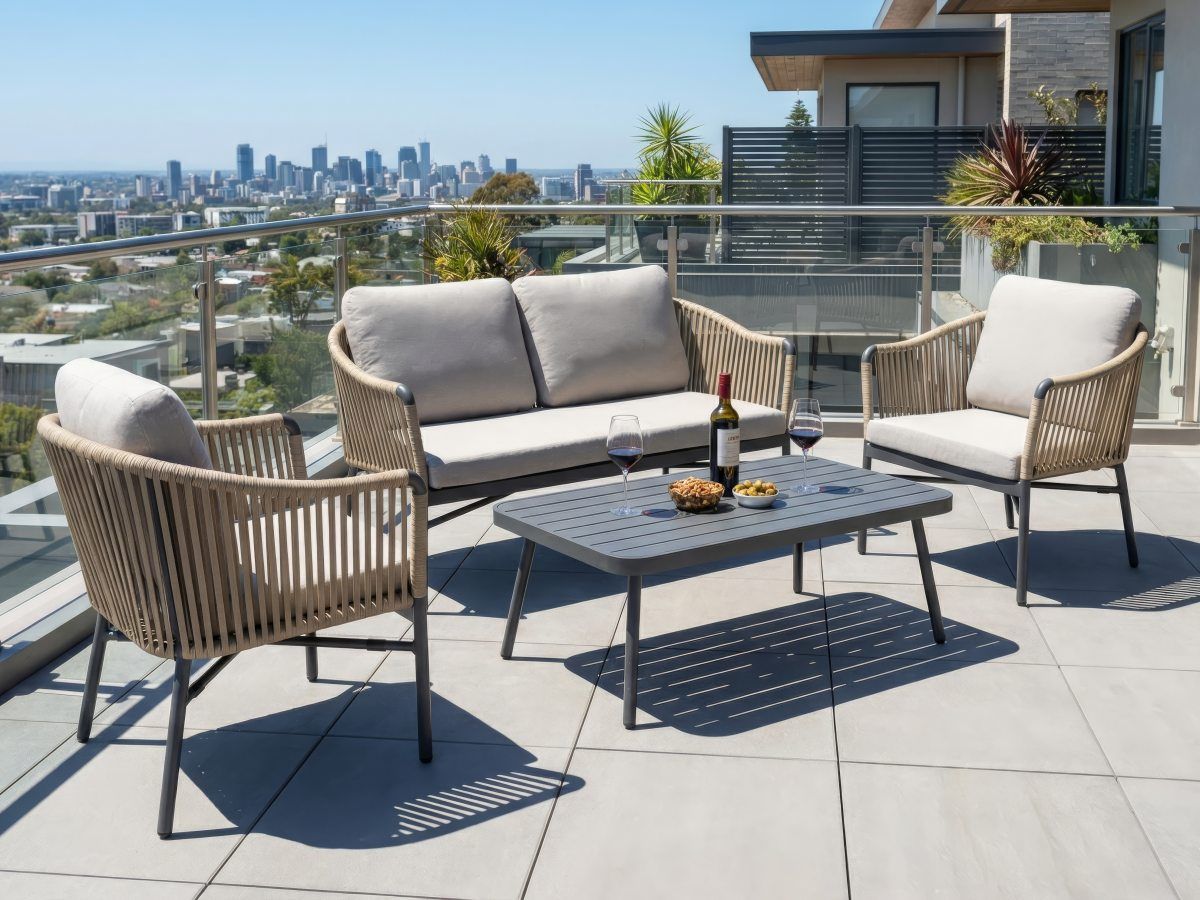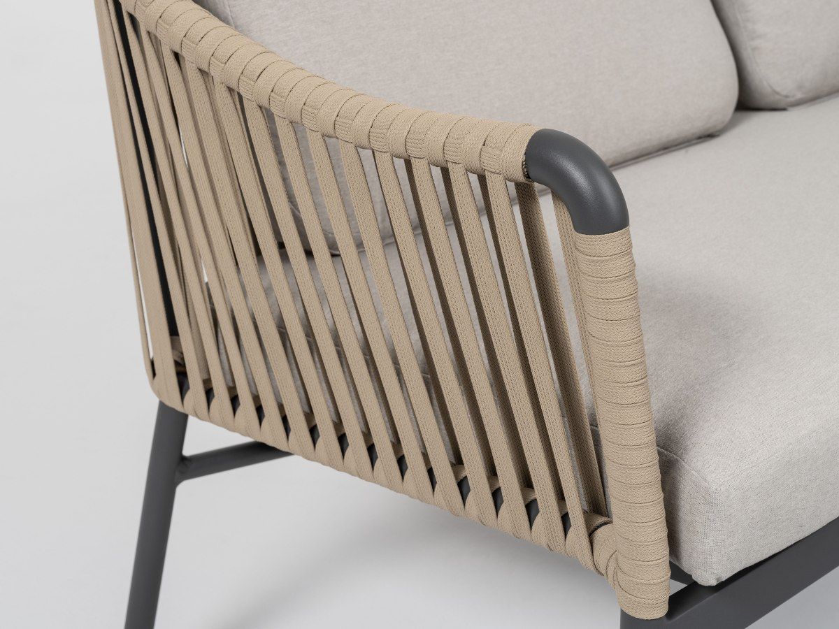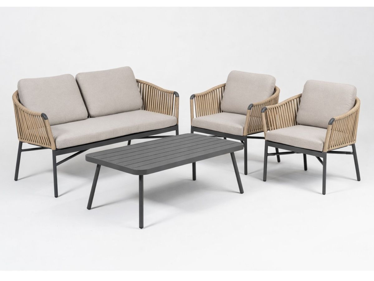 Súprava Jacky Honig v sebe spája moderný, odľahčený dizajn s hrejivým farebným kontrastom. Vďaka kombinácii antracitovej konštrukcie a medovo béžového výpletu pôsobí v priestore sviežo a štýlovo. Tento set je ideálnou voľbou pre tých, ktorí hľadajú moderné exteriérové sedenie, ktoré je nielen vizuálne atraktívne, ale aj vysoko funkčné a pohodlné pre každodenný relax na terase alebo pri bazéne. Sedacia súprava Jacky je dostupná aj antracitovom prevedení.
