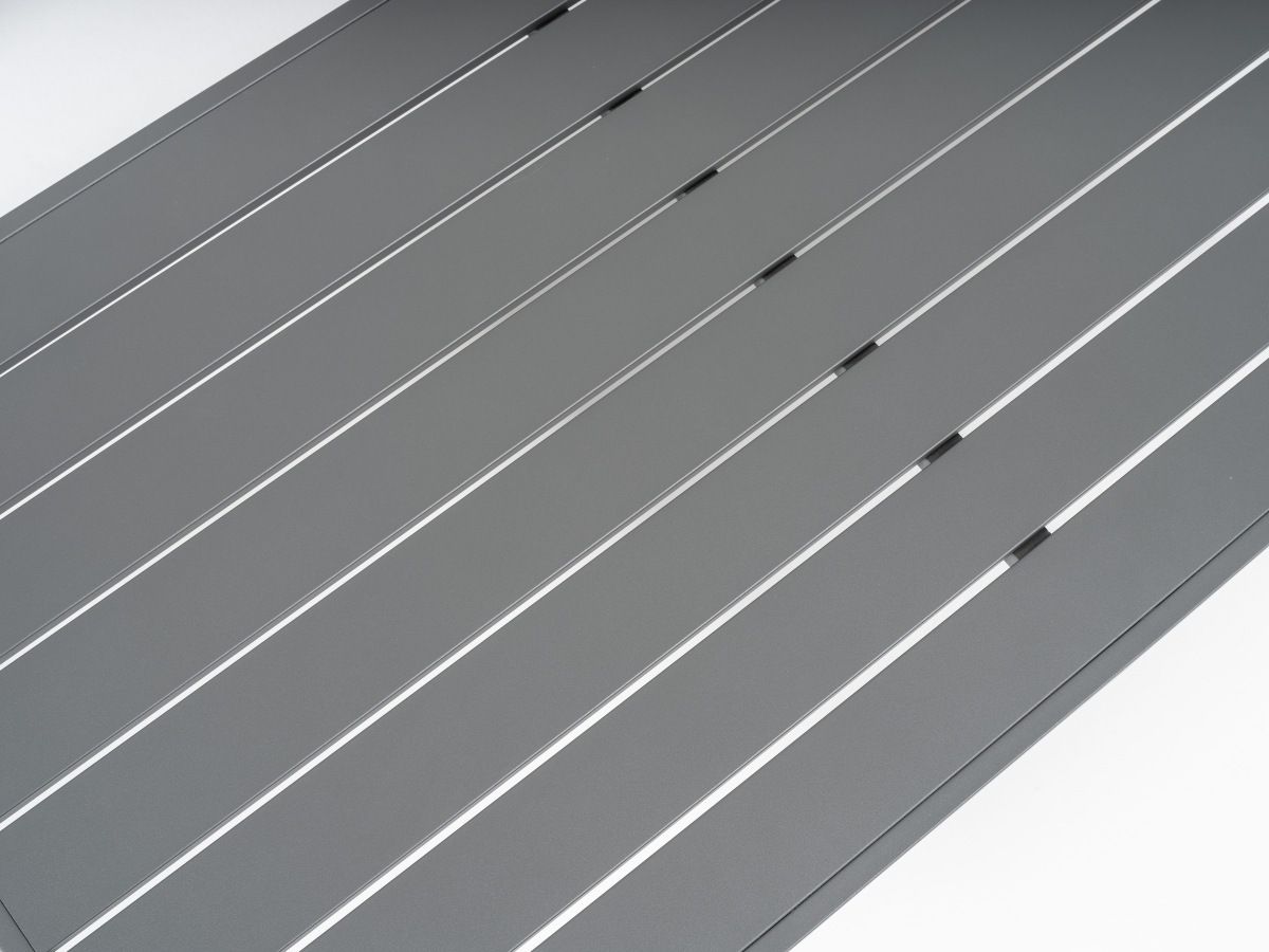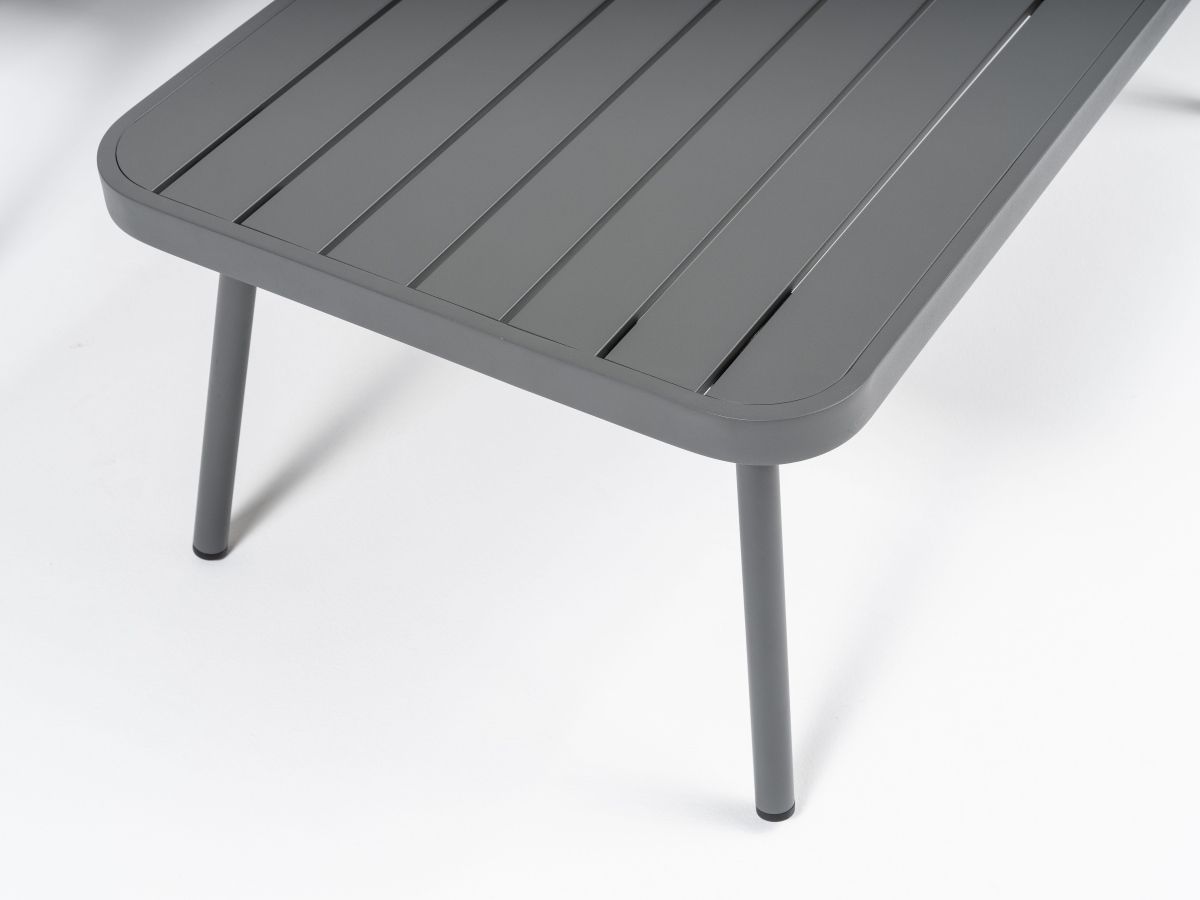 Konferenčný stolík: Disponuje hliníkovou doskou v rovnakom antracitovom prevedení, čo zabezpečuje jednotný a čistý vzhľad celej súpravy.