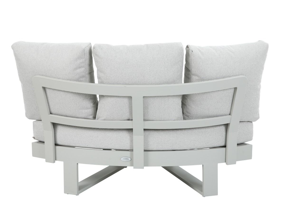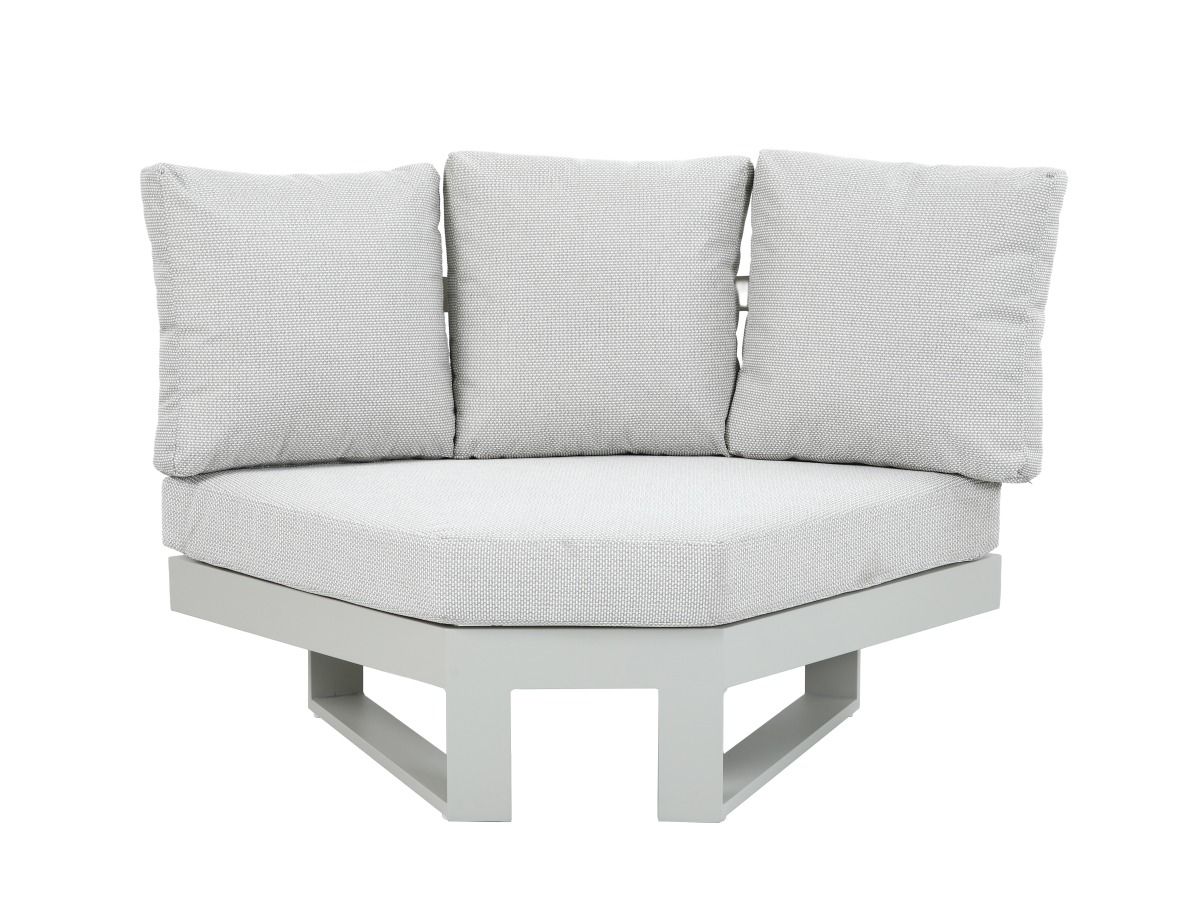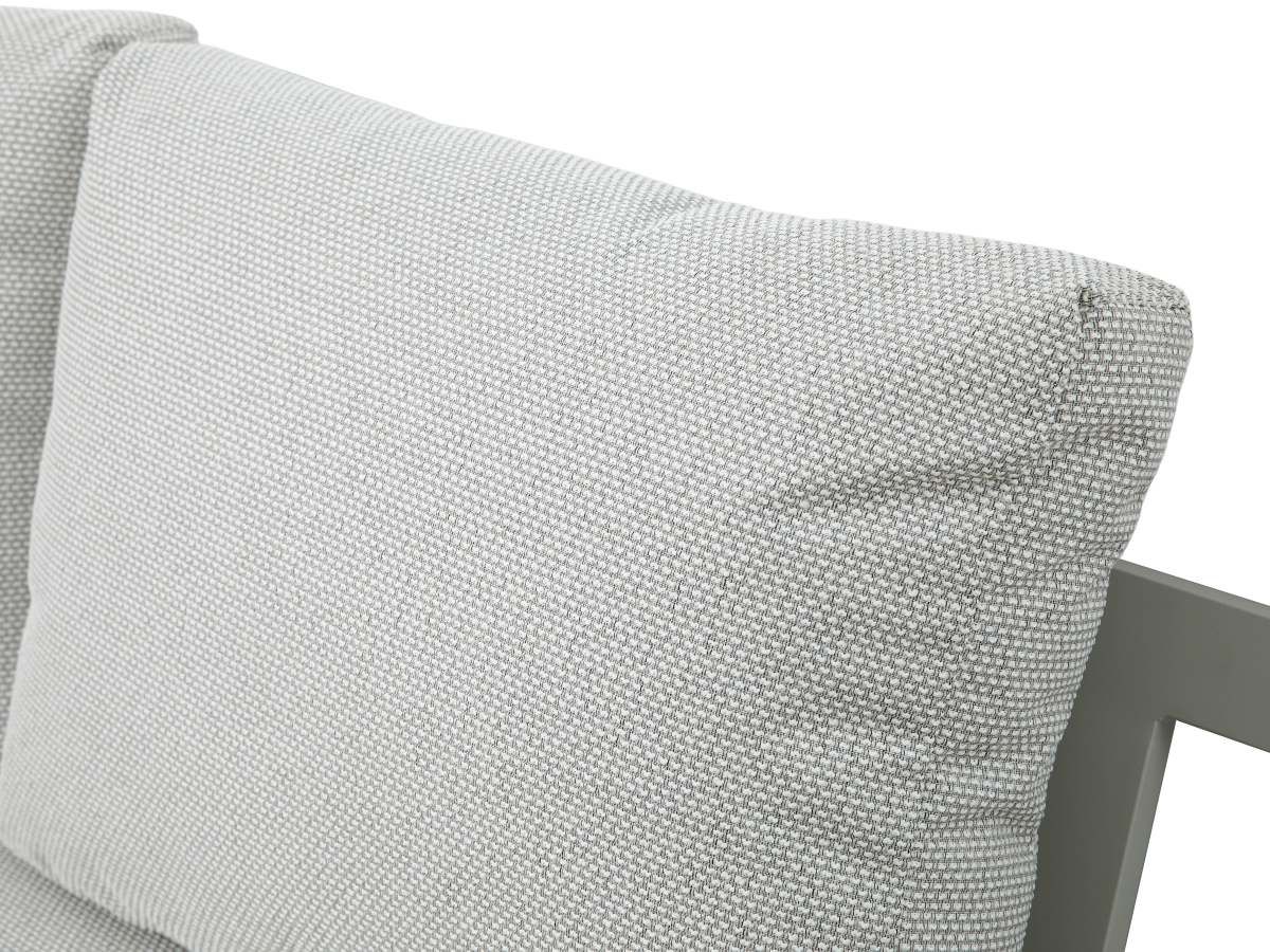 • Čalúnenie: Pohodlné vankúše v svetlosivej farbe, ktoré sú vodoodpudivé a navrhnuté pre bezproblémové vonkajšie používanie.