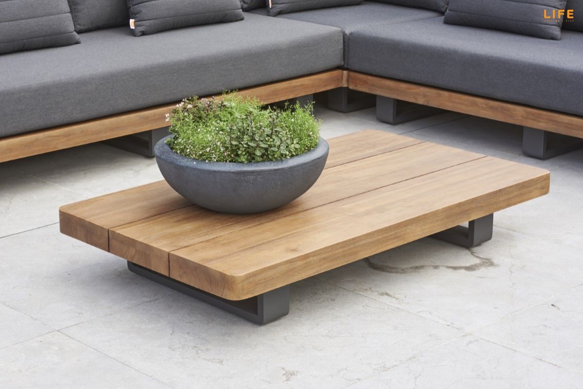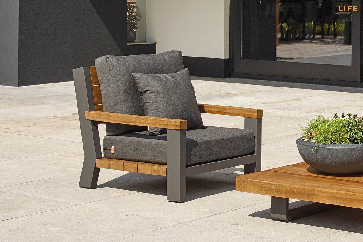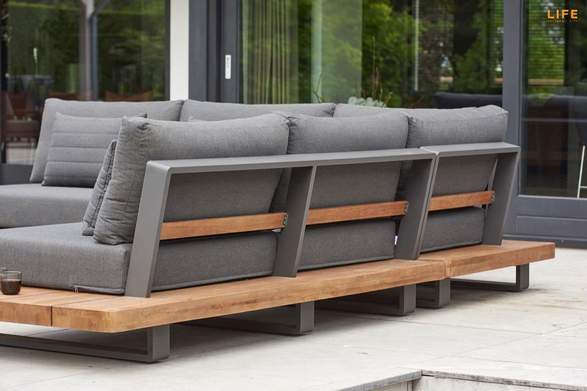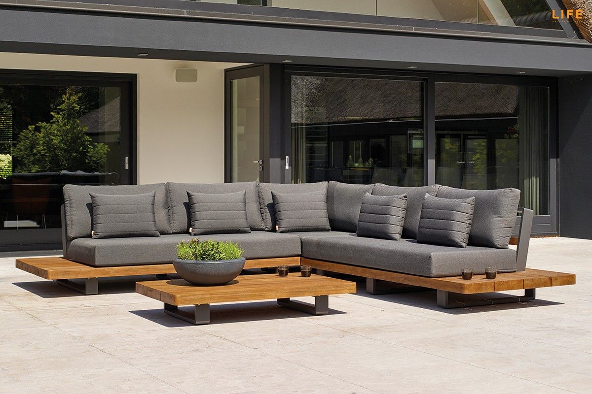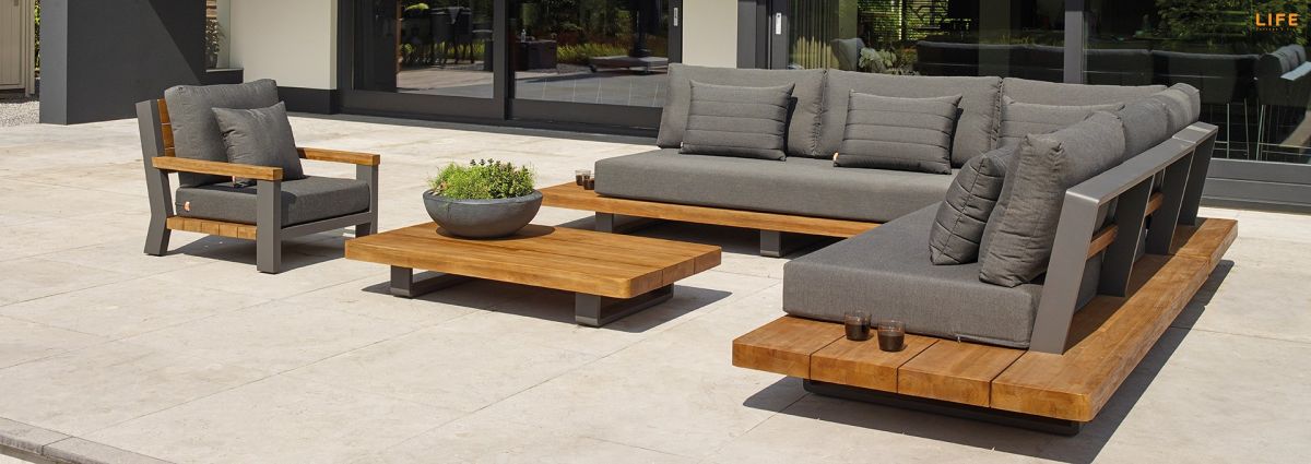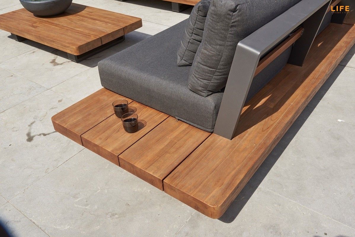 Dokonalá kombinace teakového dřeva, hliníkové konstrukce, luxusných podsedáků a polštářů dodává této zahradní sedací soupravě punc nevšednosti. Barevná kombinace se hodí na terasy, kde je podlaha v jemnějších světlejších barvách, kde bude v ideálním kontrastu a zvýrazní tak svoji eleganci. Díky použitým materiálům se nemusíte bát nechat sedací soupravu venku během celého roku. Polštáře jsou vhodné do jakéhokoli počasí díky All Weather Cushions. Teakové dřevo je nejvyšší kvality z indonézských certifikovaných plantáží. Prostorovou dispozici sedací soupravy můžete vidět na přiloženém obrázku.