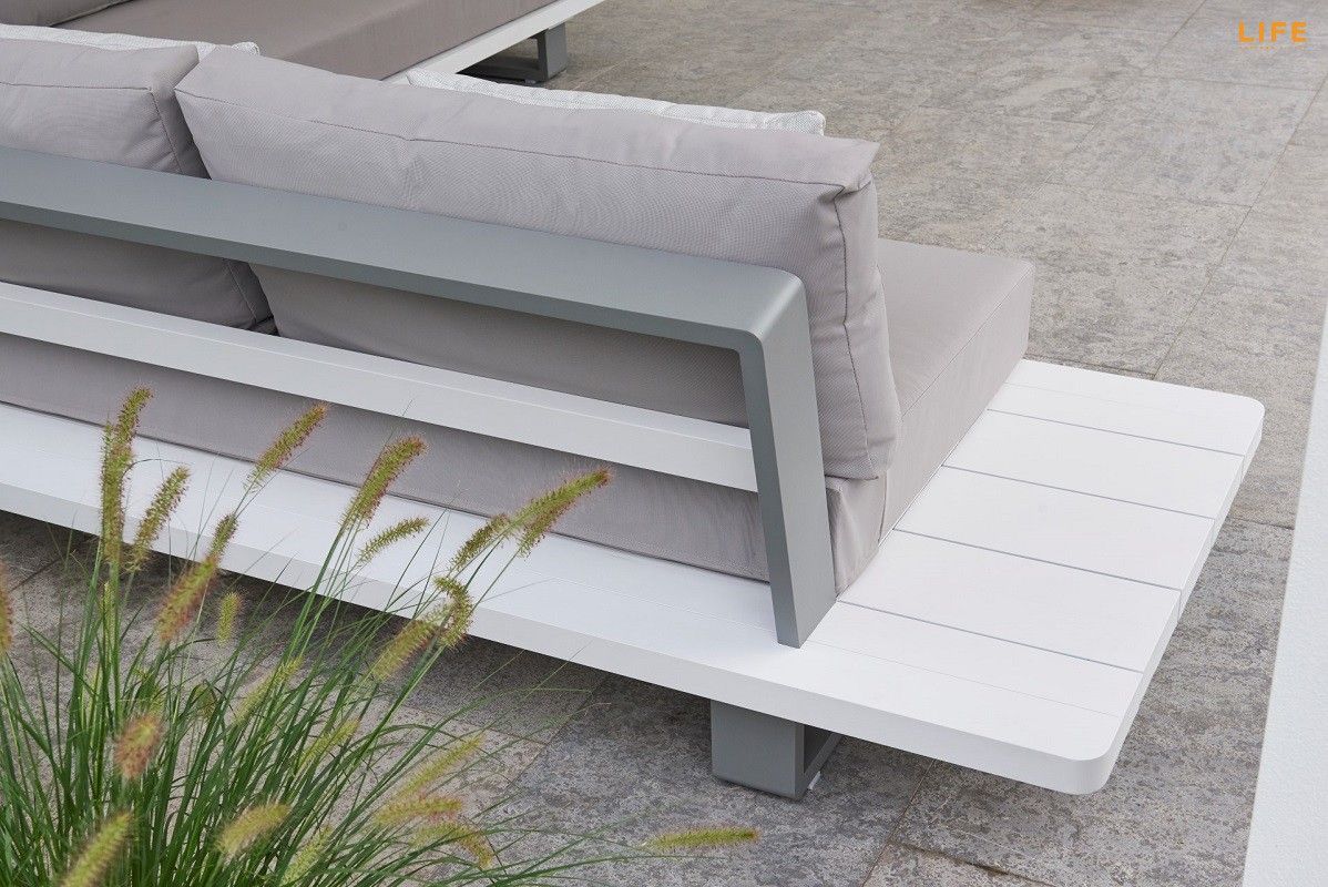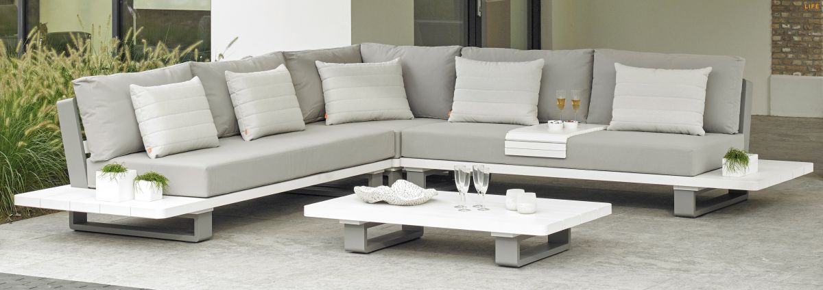 V jednoduchosti je krása, to přesně vystihuje tuto zahradní sedací soupravu Fitz Roy Alu. Bílá hliníková konstrukce v kombinaci s luxusnými podsedáky dodává této sedací soupravě punc nevšednosti a dokonalosti. Sedací souprava se hodí na moderní terasy, kde perfektně vynikne a celkově zvýzazní okolí domu. Bílou verzi doporučujeme především tam, kde je podlaha v tmavších barvách. Bude tak v ideálním kontrastu a zvýrazní svojí eleganci. Sedací souprava je dostupná v dvou barevných variantách - bílá a antracit lava. Prostorou dispozici můžete vidět na přiloženém obrázku.