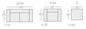 1x sedací souprava s prodlouženým modulem vlevo / vpravo
