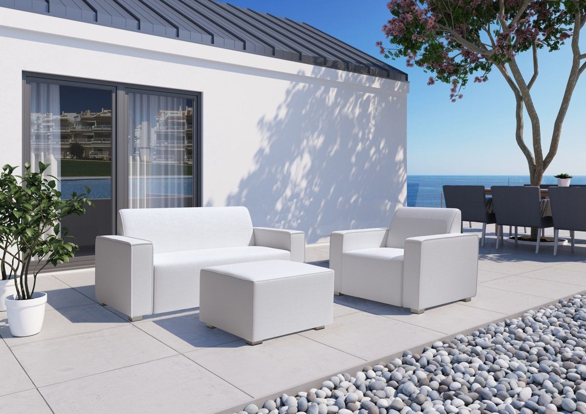 Sedací souprava Ibiza je z kolekce zahradního nábytku odolného vůči povětrnostním vlivům, který může být venku během celého roku. Nevadí jí přímé letní slunce, déšť, ani sníh. Pokud chcete sedět na sedací soupravě hned po dešti, tak nábytek pouze jednoduše otřete. Látka Silvertex se používá na jachty, takže splňuje ty nejvyšší standardy. Odolává vysokým i nízkým teplotám (do -23 °C). Na zimu tak nemusíte přemýšlet kam nábytek schovat, jednoduše zůstane venku. Vnitřní konstrukce soupravy je z odolného XPS Styroduru, který je maximálně pevný a odolný po mnoho let. Látku sedací soupravy můžete vybírat z široké škály barev, rádi Vám s výběrem poradíme. Jednotlivé moduly a jejich rozměry můžete vidět na přiloženém obrázku.