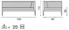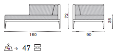 odpočinkový modul levý/pravý: 160 x 90 x 72 x 38 cm