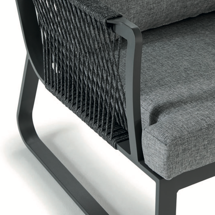 Poutavá zahradní sedací souprava Jamaica bude hvězdou každé terasy. Konstrukce sedací soupravy je hliníková a je stříkaná práškovou barvou. Výplet opěravel je ze syntetického lana a dodáva celému designu nádech modernismu. Polštáře a podsedáky jsou pokryté akrylovou látkou. Konferenční stolek má dosku z tvrzeného skla a konstrukci z hliníku.