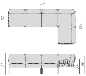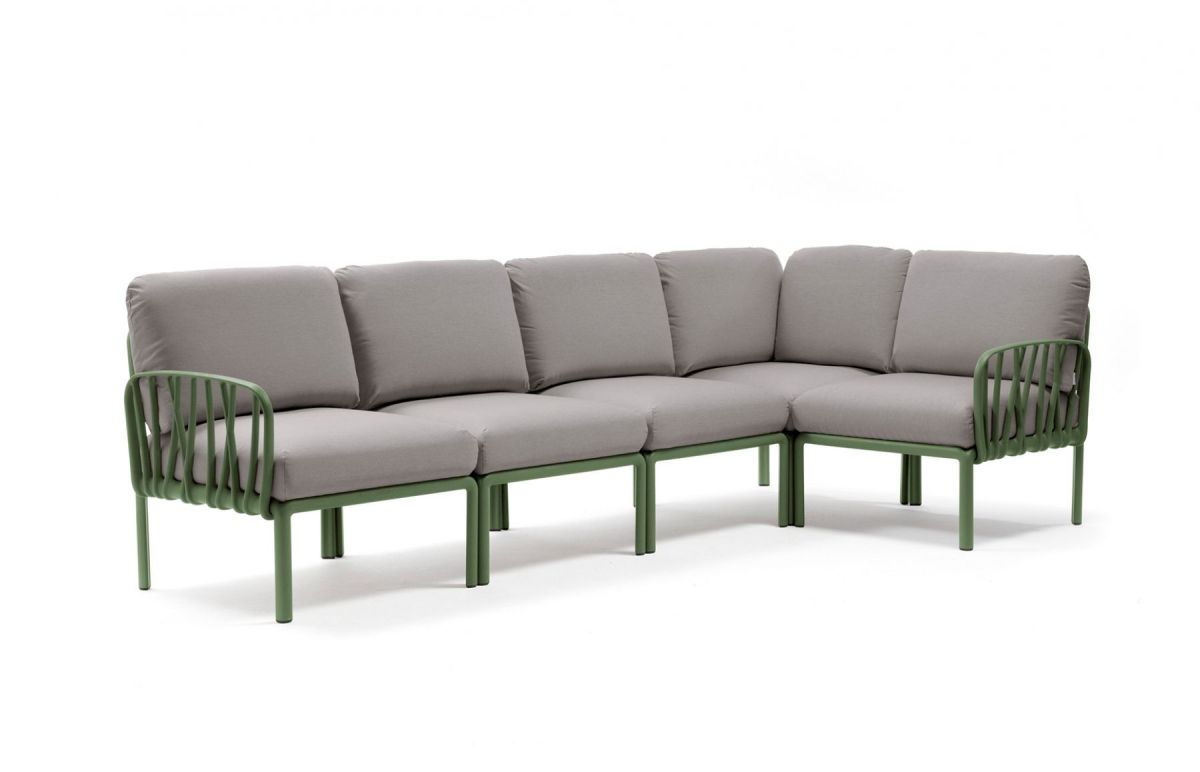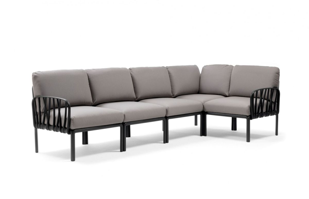 Sedací souprava Komodo 5 je díky svým barevným variantám a možnosti rozložení modulŮ do jakéhokoli tvaru vhodná na každou terasu. Můžete různě kombinovat barvu konstrukce s barvami podsedáků. Konstrukce sedací soupravy je z tvrzeného plastu zpevněného skelným vláknem. Polštáře i podsedáky jsou kompletně snímatelné a dají se prát na 30 °C. Podsedáky mají navíc speciální úchytky, díky kterým je přichytíte ke konstrukci, takže Vám podsedáky neuletí ani v silném větru. Sedací souprava má velmi snadnou montáž i demontáž.