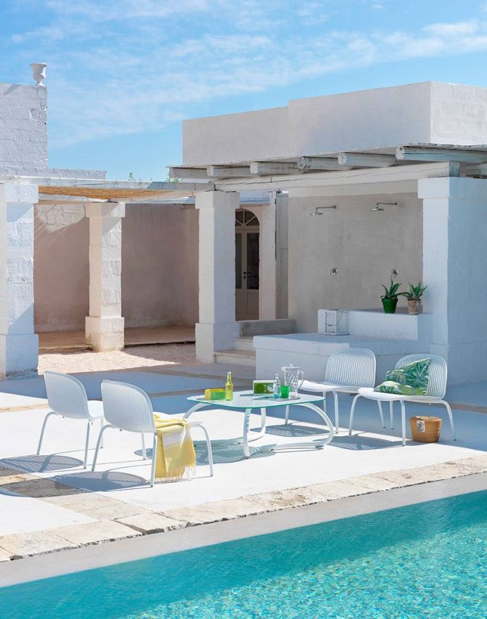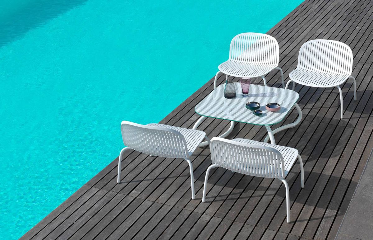 Excelentní stolová souprava Loto Ninfea Relax se skládá z konferenčního stolku Loto Relax a 4 křesel. Křesla mají hliníkovou konstrukci a sedací část je z polypropylenu. Stolek má hliníkovou konstrukci s protiskluzovými nohami, stolová deska je z tvrzeného skla. Stůl i křesla jsou dostupné ve dvou barevných variantách, a to v bílé a černé. Křesla jsou stohovatelná.