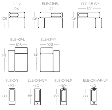 1x otevřená 2,5-sedačka s opěradlem vlevo (ELE-2,5-BL)