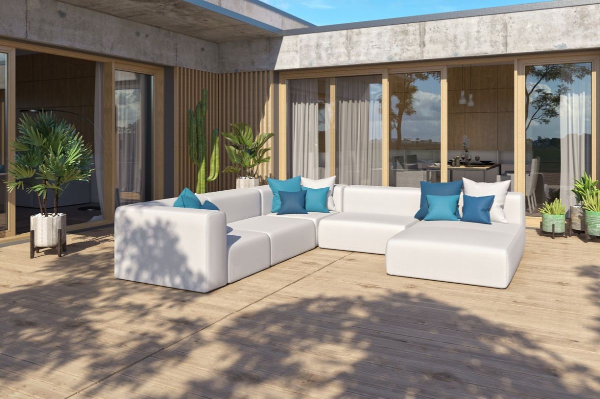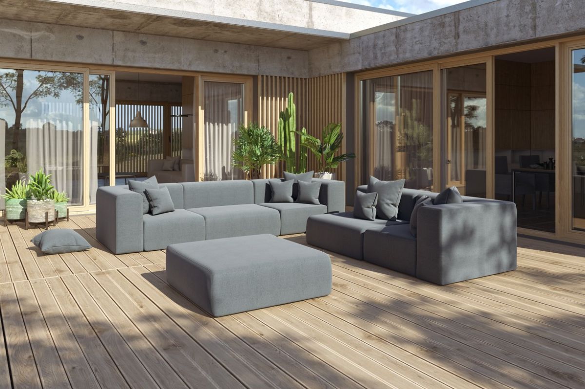 Luxusní zahradní lounge sedací souprava Nicea se považuje za vrchol moderního provedení outdoorového nábytku, kde si vychutnáváte pohodlí a luxus interiérové soupravy. Je upravená tak, aby vydržela tu největší zátěž venkovních povětrnostních vlivů a vypadala přitom jako sedačka z obývacího pokoje, kterou jste jen přesunuli na terasu. Sedací souprava Nicea je složená z více modulů a můžete si tedy poskládat soupravu jak chcete, nebo jak Vám dovoluje prostor. Vnitřní konstrukce je z odolného XPS Styroduru, který je maximálně pevný a odolný po mnoho let a ostatní části jsou ze speciální látky Silvertex (používaná na jachtách). Sedací souprava tak může být venku celoročně, nevadí jí déšť, sníh, vysoké ani nízké teploty. Jednotlivé moduly a jejich rozměry můžete vidět na přiloženém obrázku.