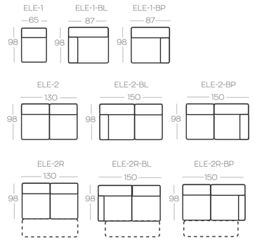 dvojsedačka s opěradlem vlevo (ELE-2-BL)