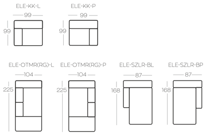 rohový modul s opěradlem vpravo (ELE-1-BP)