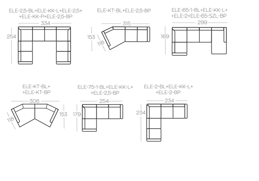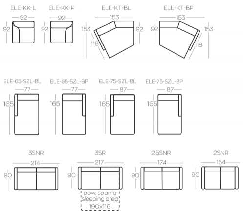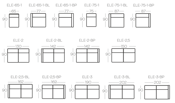2,5 sedačka s opěradlem vlevo (ELE-2,5-BL)