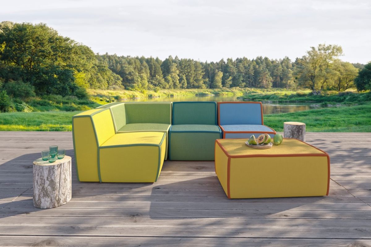 Exkluzivní a originální zahradní sedací souprava Siesta Vám nabídne vše, co od moderního exteriérového nábytku čekáte. Nevšední design, hravost barev a použití speciálních technologií, kdy exteriérová sedací souprava na první pohled vypadá, jako by jste ji přemístili z obývacího pokoje. Sedací souprava je potažená exteriérovou látkou Sunbrella, jejíž systém ,,water goes thru’’ zabezpečuje, že ji můžete nechat celoročně venku. Pokud na ni naprší, voda jednoduše rychlo přeteče přes sedačku a rychle i vyschne. Sedací souprava Siesta navíc nabízí možnost modulování, takže si ji můžete poskládat podle svých představ nebo jak Vám prostor dovolí. Barvy si zvolíte podle sebe, s výběrem Vám velice rádi pomůžeme. Jednotlivé moduly a jejich rozměry můžete vidět na přloženém obrázku.