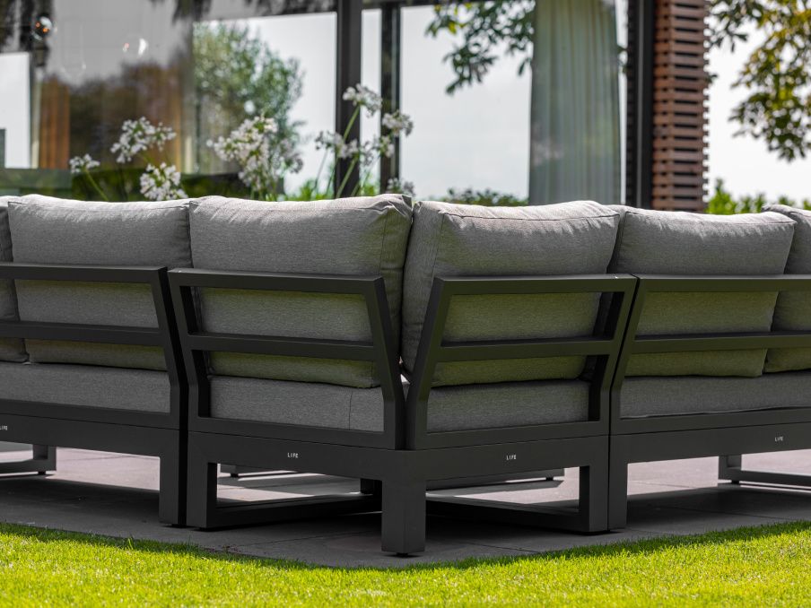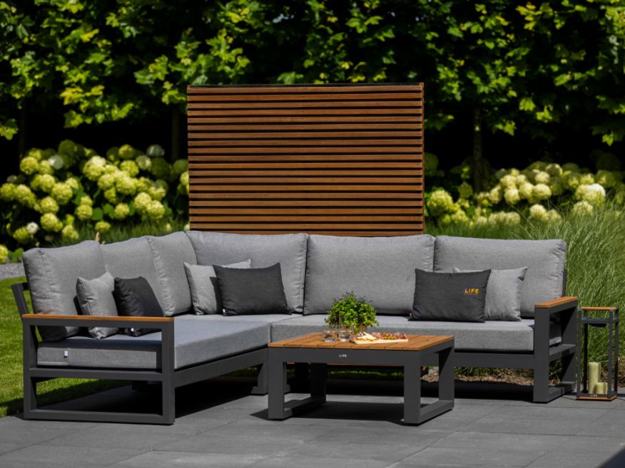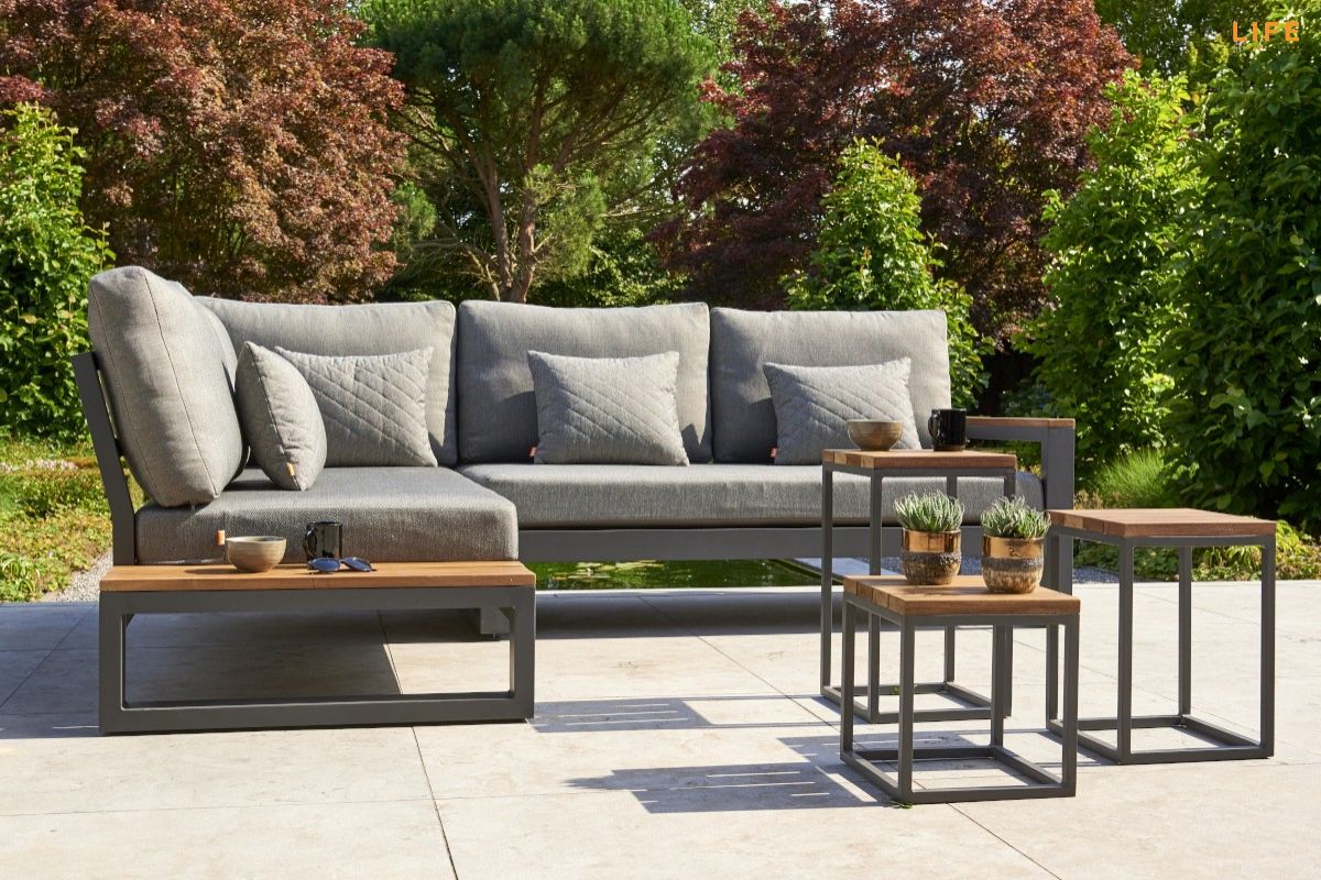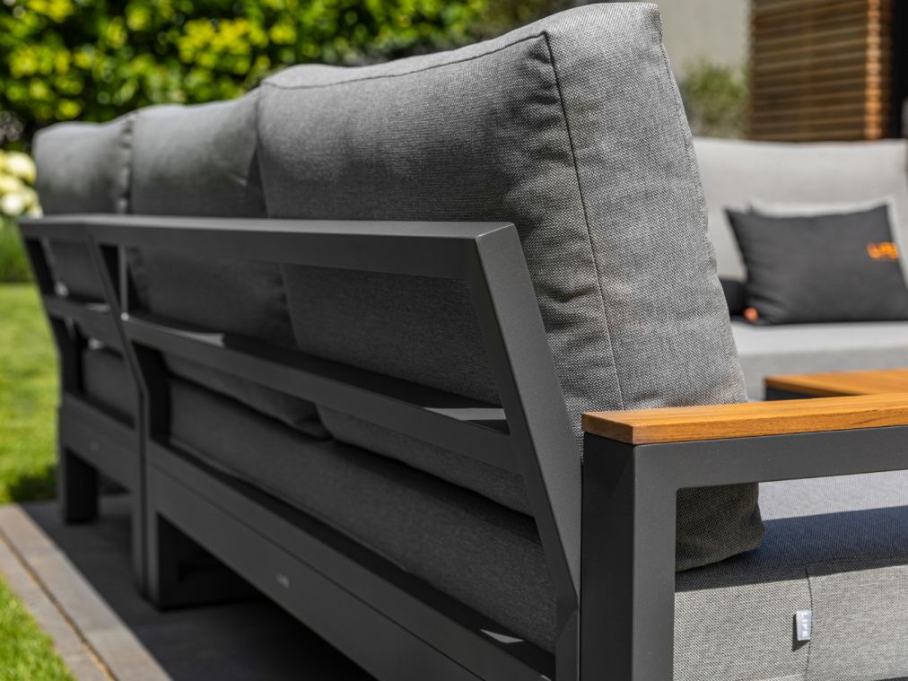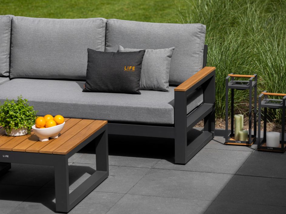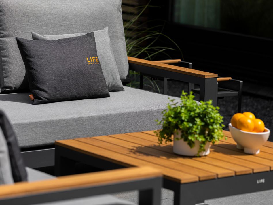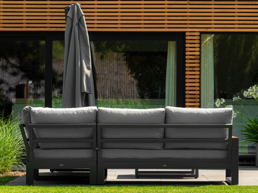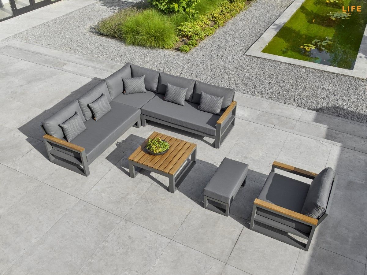 Variabilní rohová sedací souprava Soho Corner dodá Vaší terase punc dokonalosti. Výhodou této sedací soupravy je, že si ji můžete poskládat podle svých představ. Sedací souprava má hliníkový rám doplněný nepremokavými podsedáky a polštáři. Opěrky na L-kové sedací soupravě i na křesle jsou z teakového dřeva nejvyšší kvality. Stejně tak i stolek má hliníkovou konstrukci stříkanou práškovou barvou a je doplněný o teakovou desku. Sedací souprava je dostupná i ve verzi Lounge s dvojsedačkou.