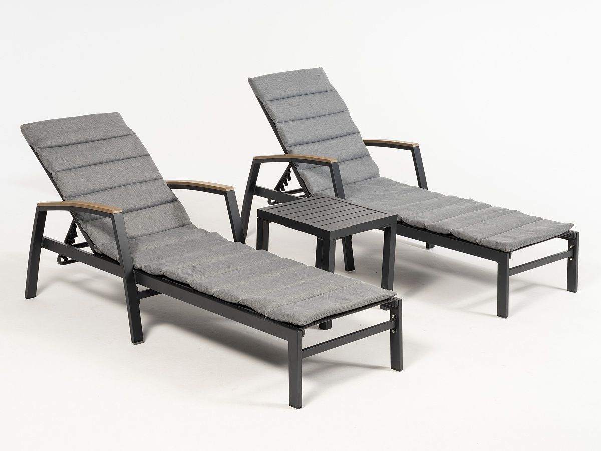 Krásný praktický set zahradních lehátek Malta Vás na první pohled zaujme svým moderním designem. Konstrukce lehátek je hliníková a je stříkaná práškovou antracitovou barvou. Opěrky na ruce jsou z polywoodu - odpadá Vám tedy každoroční starost jako je tomu u dřeva. Matrace jsou impregnované a odolné vůči vlivům počasí, ale nejsou voděodolné, takže je před deštěm potřeba je schovávat. Lehátko je možné nastavit do různých poloh. K setu lehátek je i praktický příruční stolek na odkládání drinků, knih nebo osobních věcí.