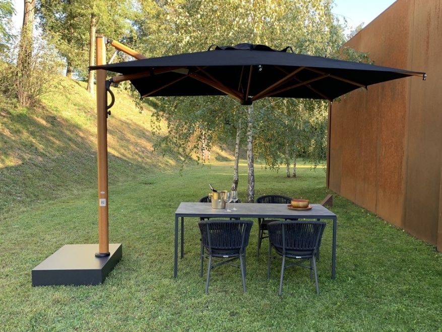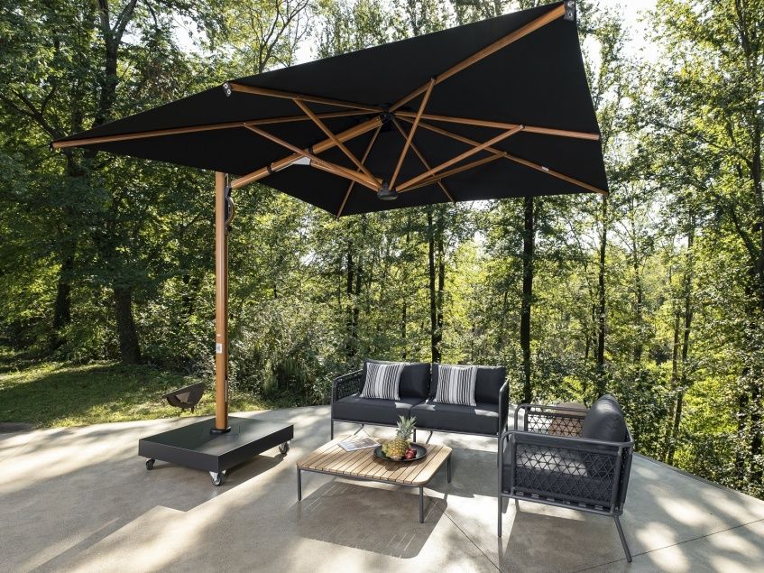 Slunečník Astro Timber od renomované italské společnosti Scolaro. Konstrukce slunečníku je ze silného hliníkového rámu, který imituje dřevo. Velmi lehce můžete slunečník naklopit horizontálně i vertikálně, dá se s ním otáčet o 360° kolem hlavní osy. Součástí slunečníku je ocelový podstavec. Ostatní komponenty jako šrouby a matice jsou z nerezové ocele. Stínící plachta slunečníku je vyrobená z akrylu, který odpuzuje vodu a nečistoty. Hustota akrylové látky je 350 gr/m². Slunečník Astro Timber je dostupný i ve velikosti 3,5 x 3,5 m a 3 x 4 m, stínící plachta je dostupná v 8 barevných variantách.