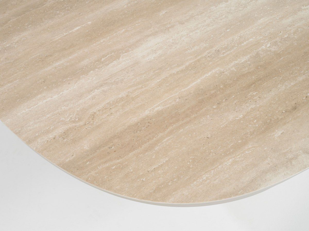 Stolová doska: Špičkový Sinterstone s dekorom svetlý travertín. Tento materiál verne imituje vznešený prírodný kameň, no na rozdiel od neho je neporézny, mimoriadne odolný voči poškriabaniu, škvrnám a veľmi nenáročný na bežnú údržbu.