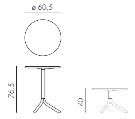 Stolek Spritz je vyrobený z tvrzeného plastu zpevněného skelným vláknem. Povrch stolku Spritz je úplně hladký a tím se liší od stolku Step. Má dvě možnosti výškového nastavení. U nízké varianty je stolek vysoký 40 cm a je vhodný jako příruční stolek k lehátkam Alfa, Omega a Atlantico. U vysoké varianty má výšku 76,5 cm a je tedy vhodný i jako stolek k židlím na balkony a terasy. Stolová deska má průměr 60,5 cm. Stolek je dostupný v 7 barevných variantách.