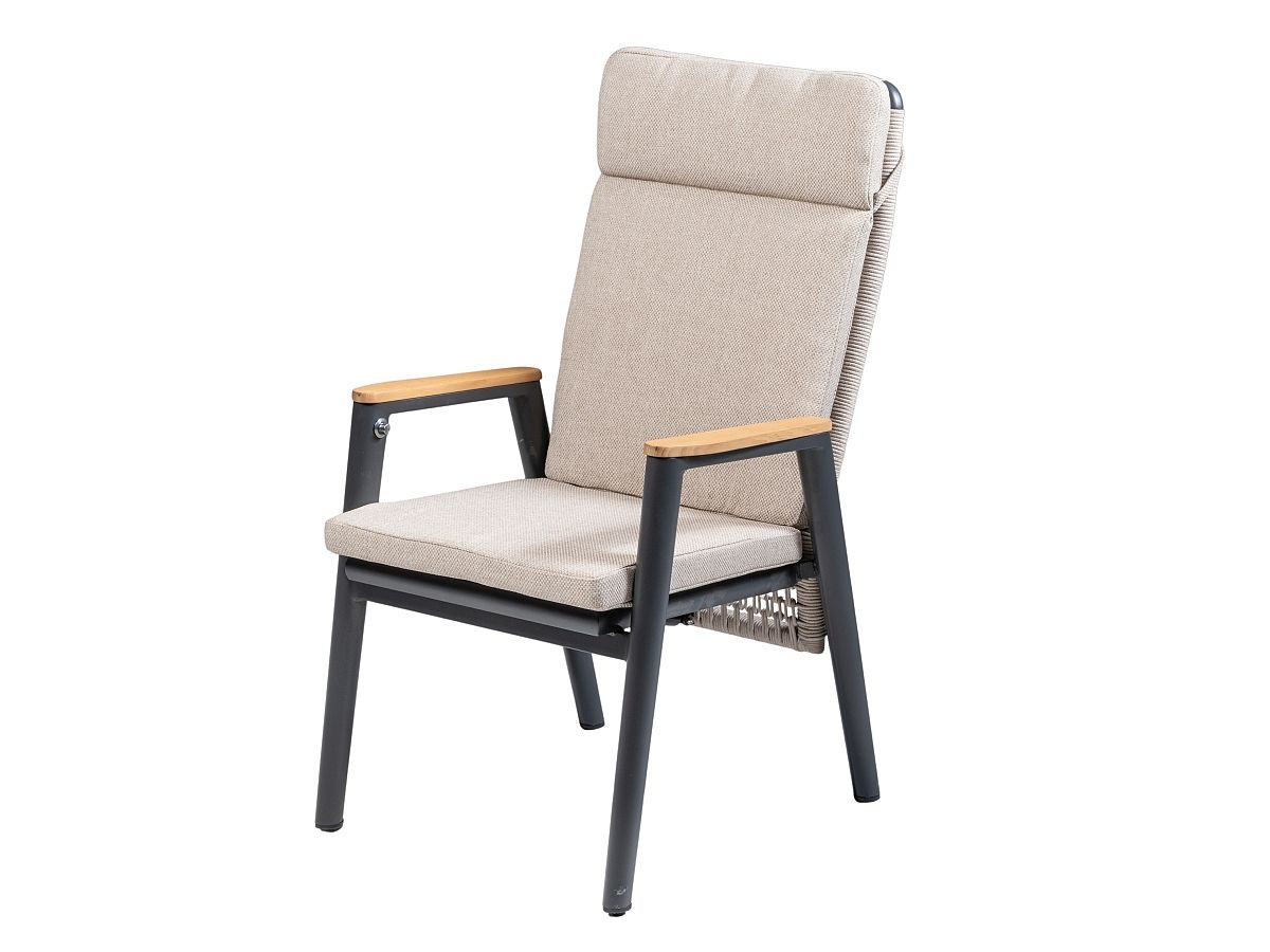 Elegantná a moderná jedálenská stolová súprava Aqua Star XL je ideálnou voľbou ak chcete na terase presedieť veľa času. Stôl má hliníkový rám v Antracitovej farbe a stolová doska je z materiálu Sinterstone (umelý kameň) v béžovom prevedení. Stôl je možné jednoducho rozložiť pomocou synchrónného automatického vysúvania. Kreslá majú hliníkový rám v rovnakom farebnom prevedení ako stôl, sedacia a operadlová časť je ručne ovinutá rýchloschnúcim textilným lanom v béžovej farbe . Podsedáky sú v sivej farbe a sú odolné voči poveternostným vplyvom. Kreslo si môžete polohovať vďaka plynovej pružine. Kreslá Aqua sú dostupné aj v tmavošedom prevedení.
