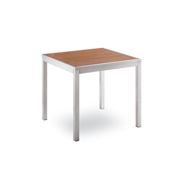 Odolný a praktický zahradní stůl Bavaria 80 je ideální volbou na terasy hotelů a restaurací. Rám stolu je z broušeného elexovaného hliníku, který dodává stolu saténový vzhled. Vrchní stolová deska je z hliníkových lamel pokrytých speciálním termoplastickým materiálem, který vzhledově imituje dřevo, je odolný vůči UV záření a škrábnutím. Tento materiál je téměř bezúdržbový, lehce se čistí, nestárne a má dlouhou životnost. Stolovou desku si můžete vybrat ze 2 barevných variant. Ke stolu se perfektně hodí zahradní židle Bavaria, které máme také v nabídce.