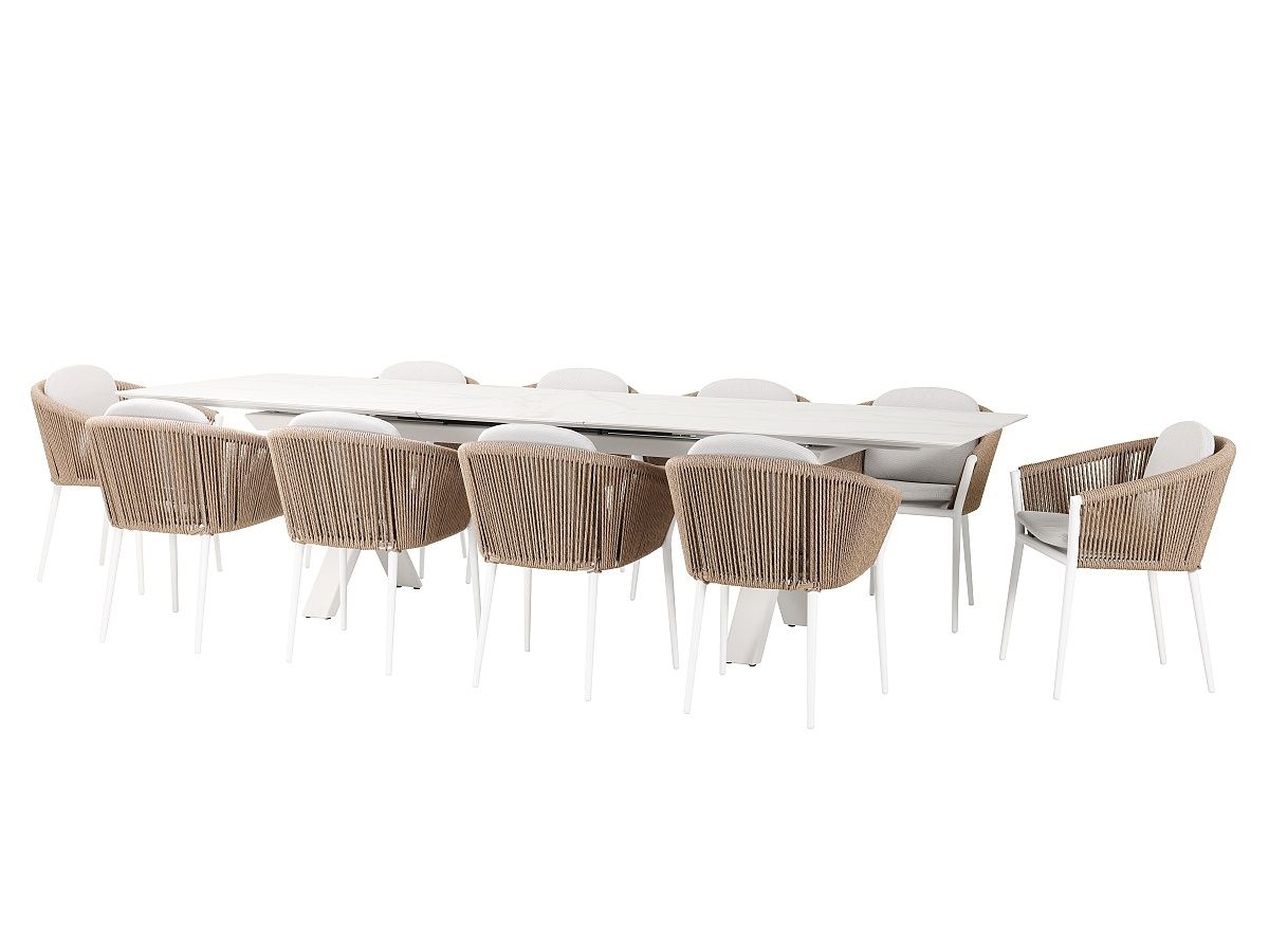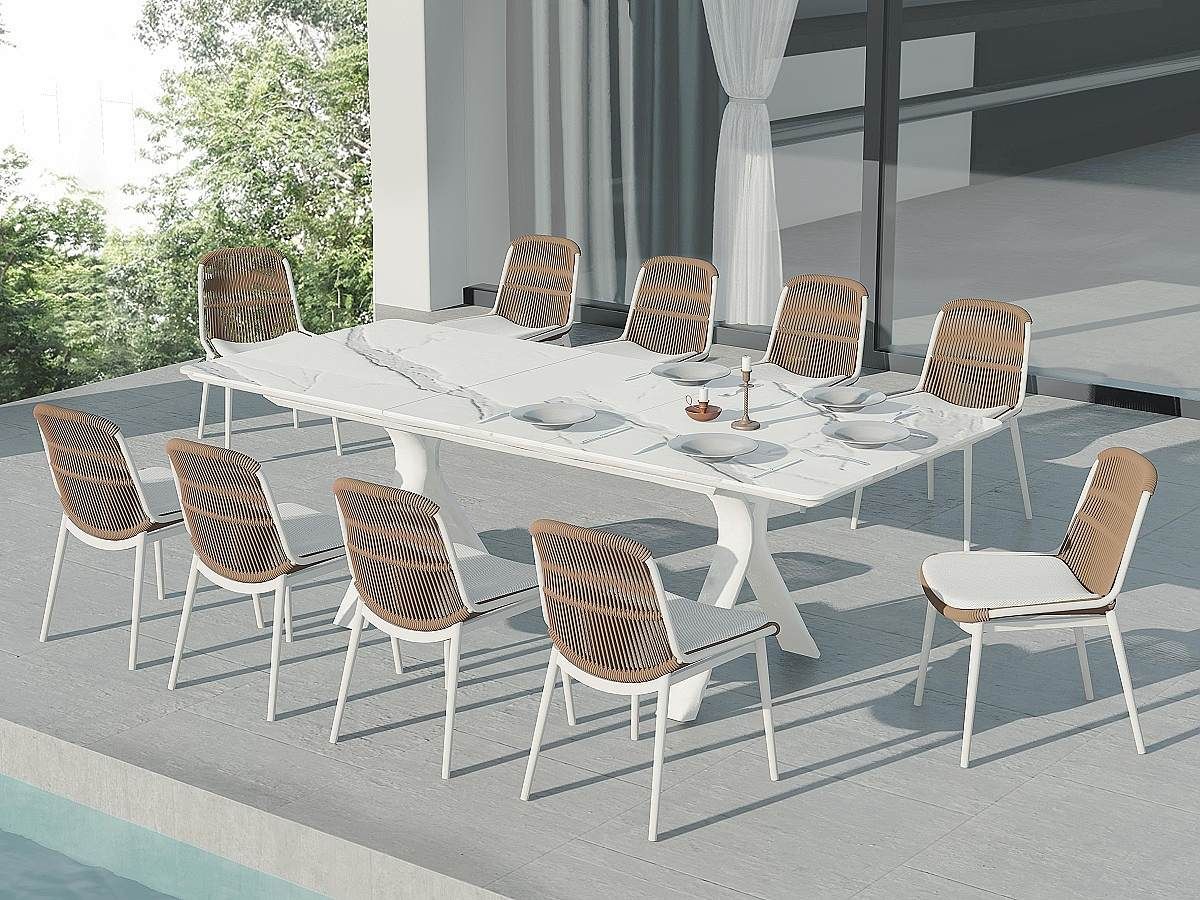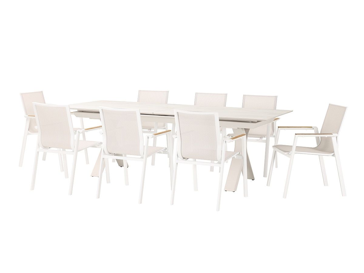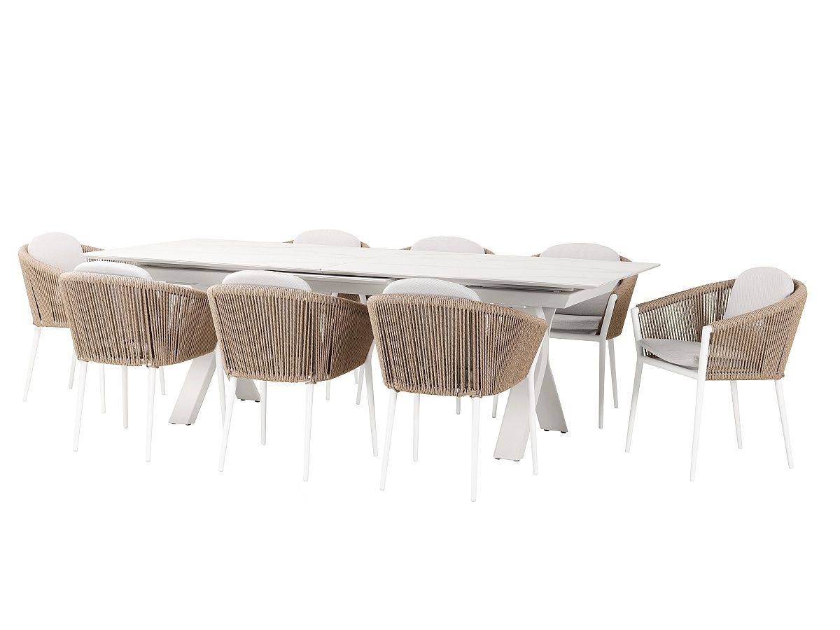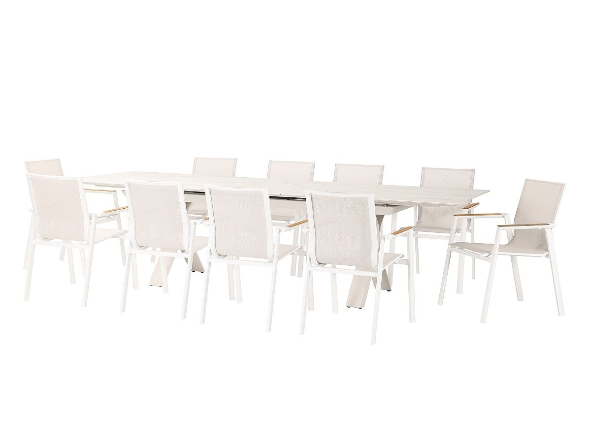 Nádherný elegantný zahradní stůl Carson Ivory bude hvězdou každé terasy. Rám stolu je hliníkový stříkaný krásnou ivory farbou. Stůl má stolovou desku z materiálu sinterstone s dekorem šedobílého mramoru. Stůl je roztahovací z 240 cm na 300 cm jednoduchým pohybem.